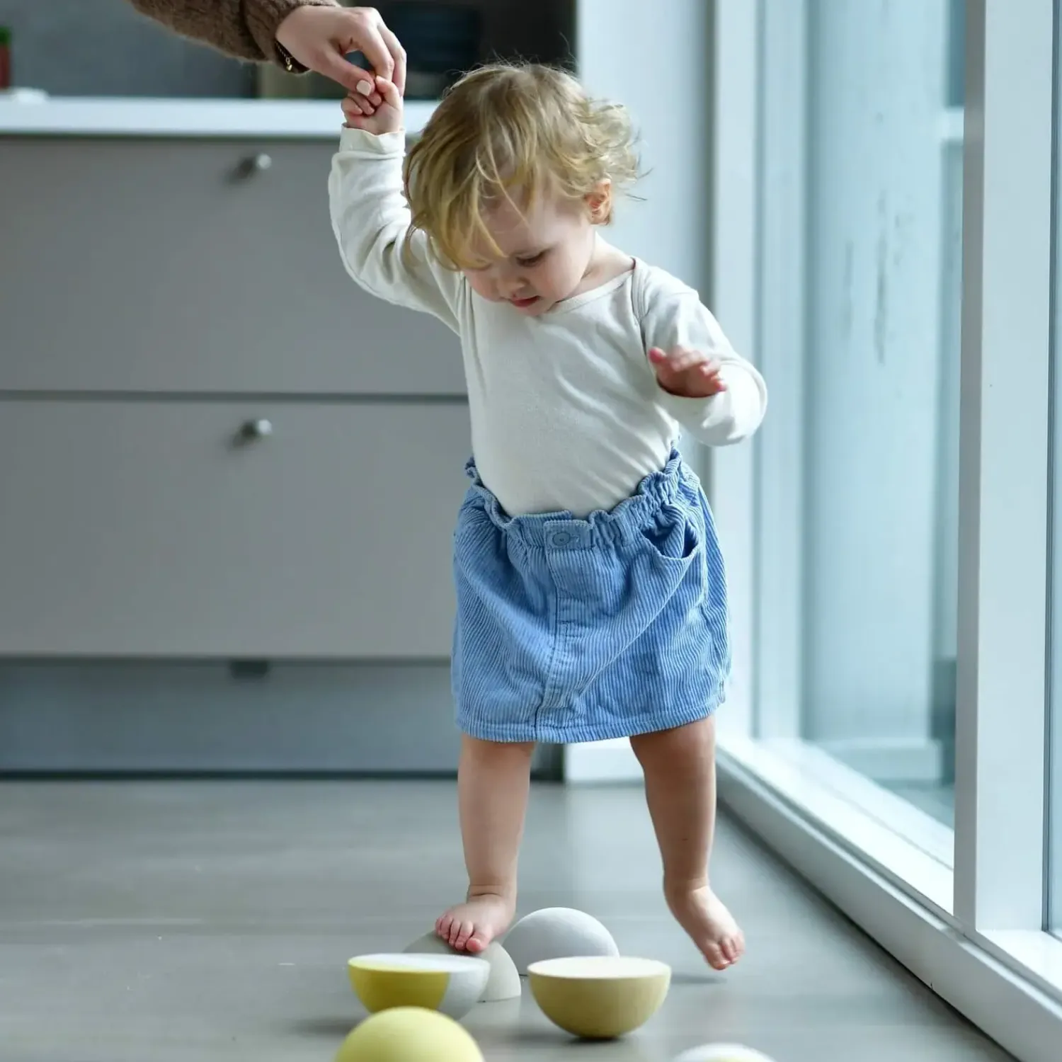 Hvis du søger redskaber, der støtter dit barns fysiske udvikling, giver dette sæt mulighed for at træne balance på en naturlig måde. Den halvkugleformede struktur udfordrer barnets evne til at finde ligevægt, hvilket styrker muskulaturen og kropsforståelsen gennem gentagen brug.