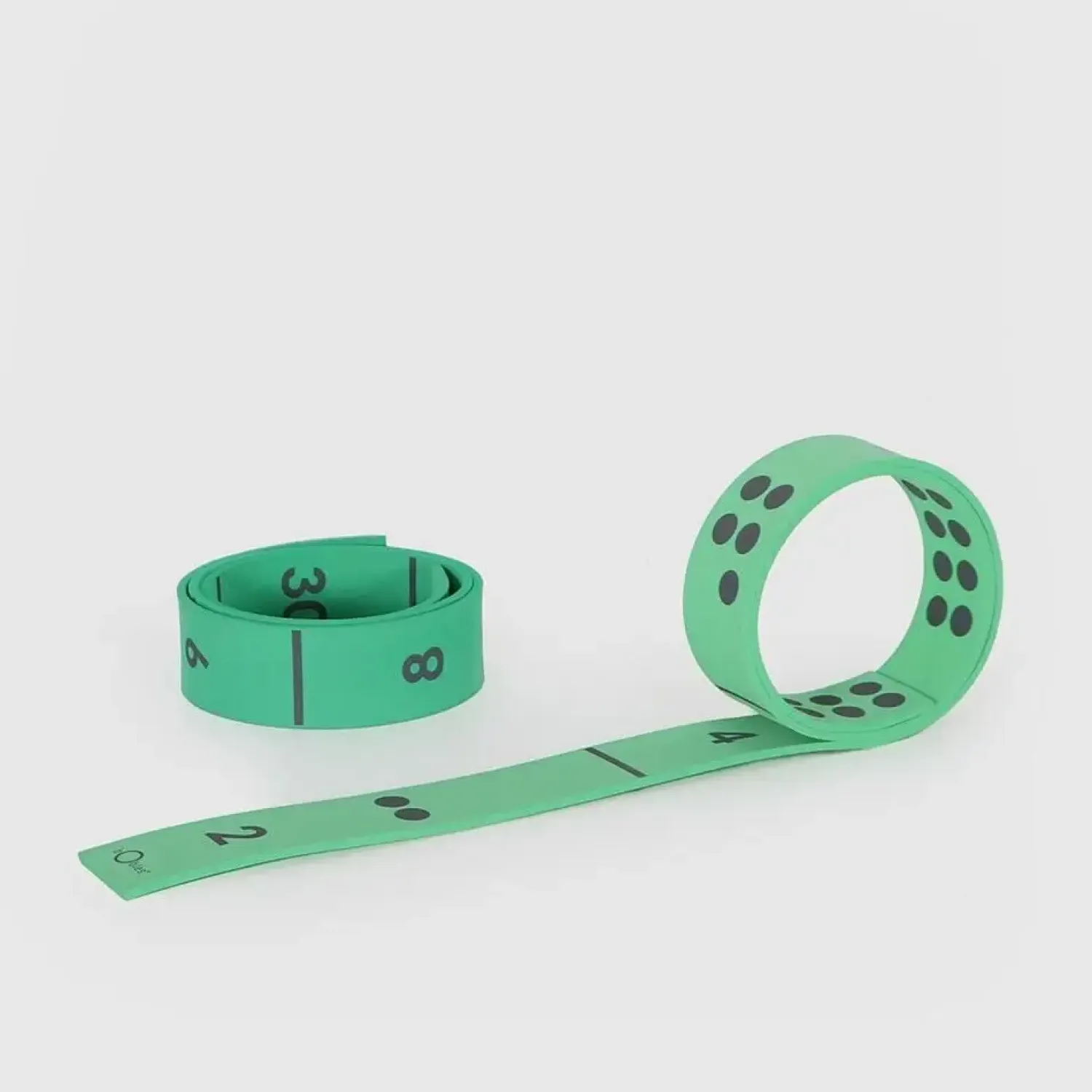 Disse fleksible, grønne læringsbaner gør matematik håndgribelig for børn, der er i gang med at lære talrækkerne. Banerne er designet til at lære talrækkerne fra 1 til 10, hvor tal og prikker er trykt på strimlerne for at gøre læringsprocessen både visuel og interaktiv.