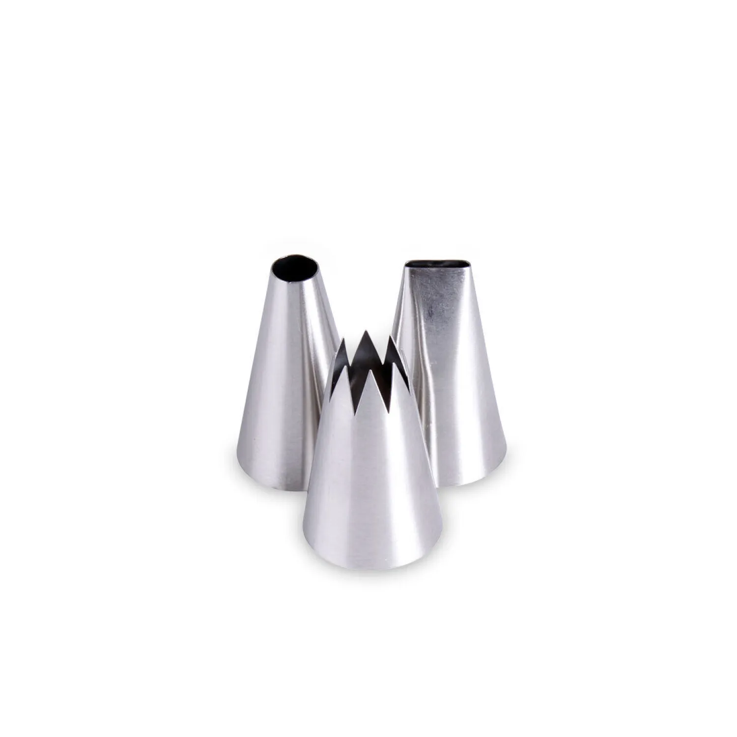 Tyllerne er fremstillet i rustfrit stål, som tåler hyppig brug og rengøring. Den praktiske størrelse passer til almindelige sprøjteposer, og formen gør det nemt at styre dekorationen og opnå flotte resultater.