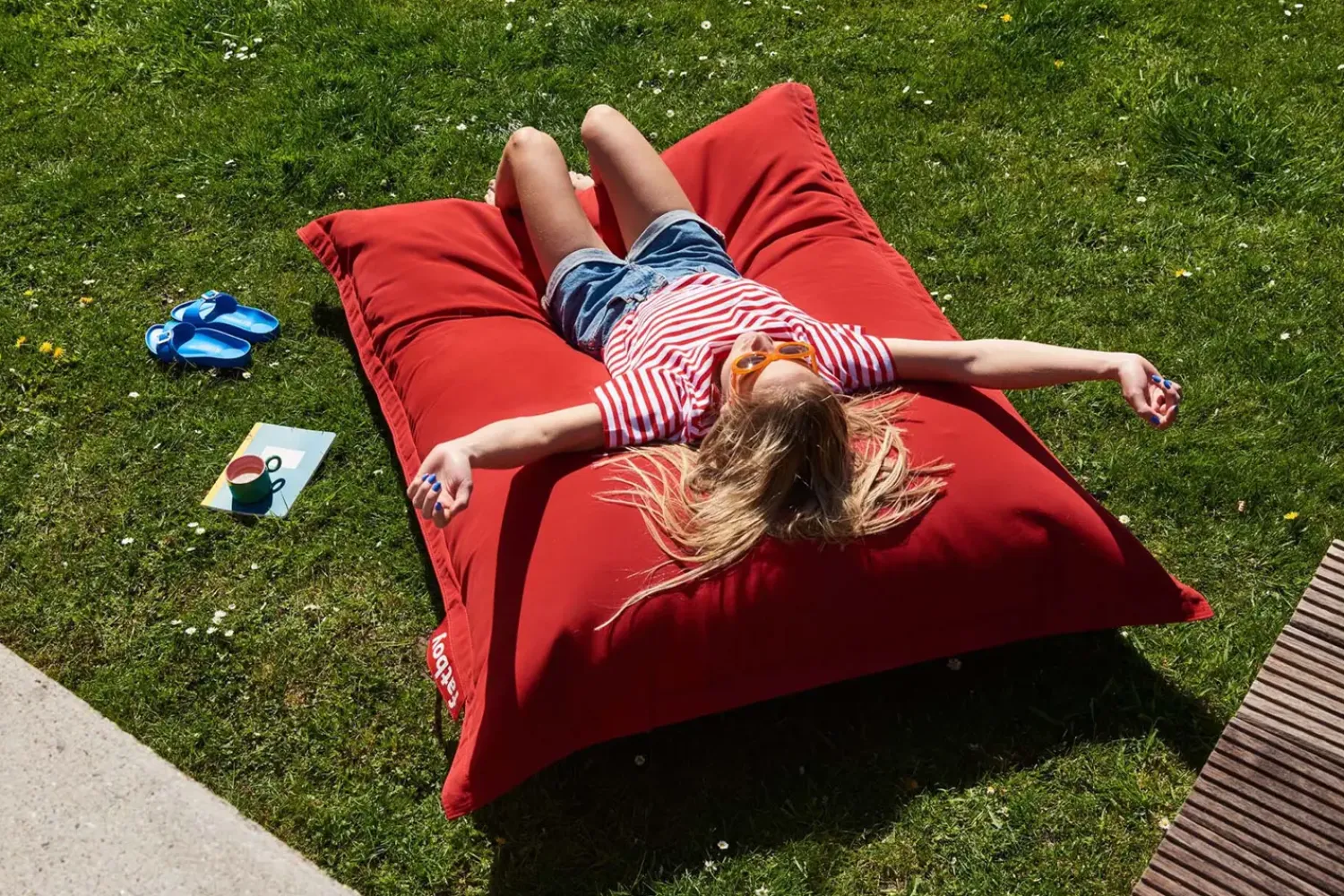 Fatboy – Udendørs Sækkestol – Rød er imprægneret mod sol, vind og fugt, hvilket gør den egnet til udendørs anvendelse. Den vandtætte egenskab letter rengøringen og vedligeholdelsen. Materialet er særligt udviklet til at modstå forskellige vejrforhold, hvilket sikrer lang holdbarhed og bibeholder sækkestolens udseende over tid.