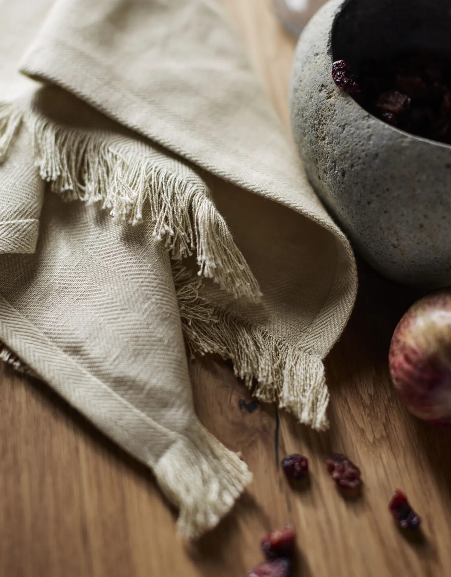 Inspireret af det japanske ord for velsmag, er Umami en serie af køkkentekstiler, designet i en eksklusiv og diskret sildebensstruktur.Umami mundservietten har et enkelt og tidløst udtrykt og er lavet i en skøn blanding af 50% bomuld og 50% hør.De dekorative frynser på to sider giver mundservietten et enkelt, uformelt og håndlavet udtryk.Mundservietten er et perfekt supplement til en personlig og naturinspireret borddækning og tilbyder en både praktisk og æstetisk løsning. Brug mundservietten sammen med Umami dækkeservietten, der matcher eller skaber kontrast i borddækningen. Mundservietterne sælges i sæt af 2 stk. Plejeanvisning: Mundservietten kan maskinvaskes ved 60 grader. Størrelse: 45×45 cmMateriale: 50% Bomuld/50% Hør Design: Kira Usbeck