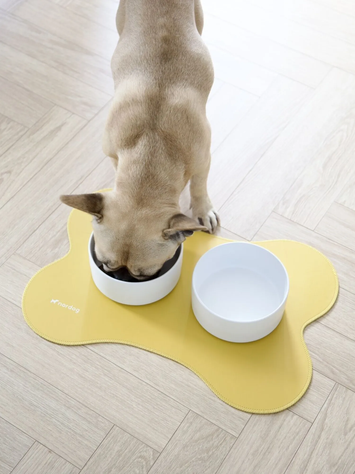 Underlaget fra Nordog er lavet i et vandtæt materiale og er formet som et hundekødben. Underlaget sørger for at beskytte dit gulv mod pletter samtidig med, at skålenes bund holder sig pæne. Du kan let rengøre underlaget med en fugtig klud.