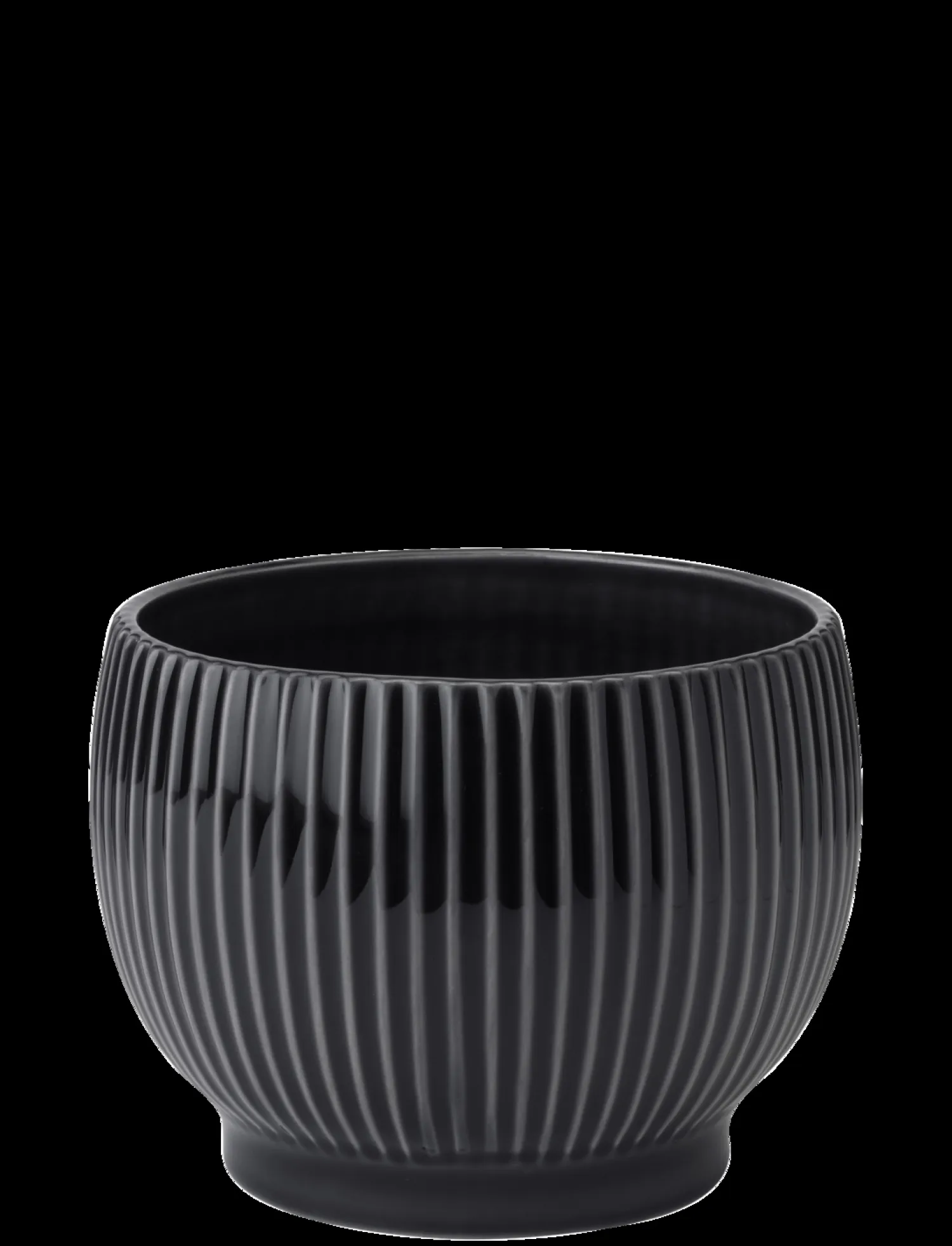 Denne urtepotteskjuler fra Knabstrup Keramik forener elegant formgivning med nutidig æstetik. Den ribbede tekstur og den blanke sorte finish skaber en interessant kontrast, der tilfører dybde og karakter til enhver planteopstilling. Den runde form komplementerer naturligt planternes organiske linjer.
