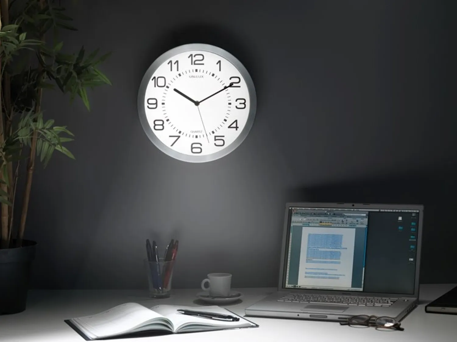 De store arabiske tal og den hvide baggrundsbelysning gør det nemt at læse, uanset hvor du er i rummet.