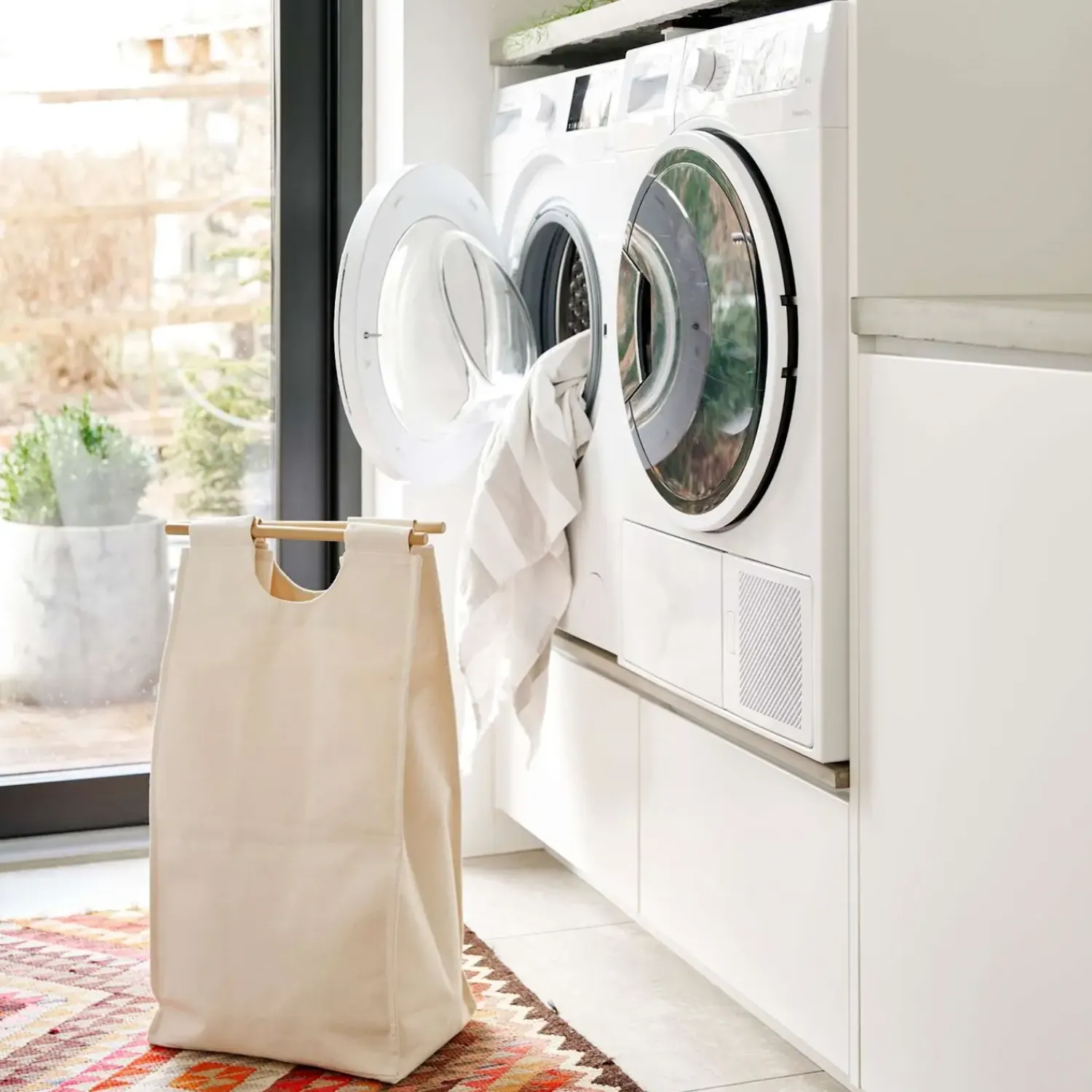 Denne alsidige opbevaringsløsning er perfekt til at sortere vasketøj, men kan også bruges til opbevaring af legetøj, pantflasker eller andre småting. Den er ideel til brug i entréen, køkkenet, badeværelset eller børneværelset, hvor den forener funktionalitet og æstetik.