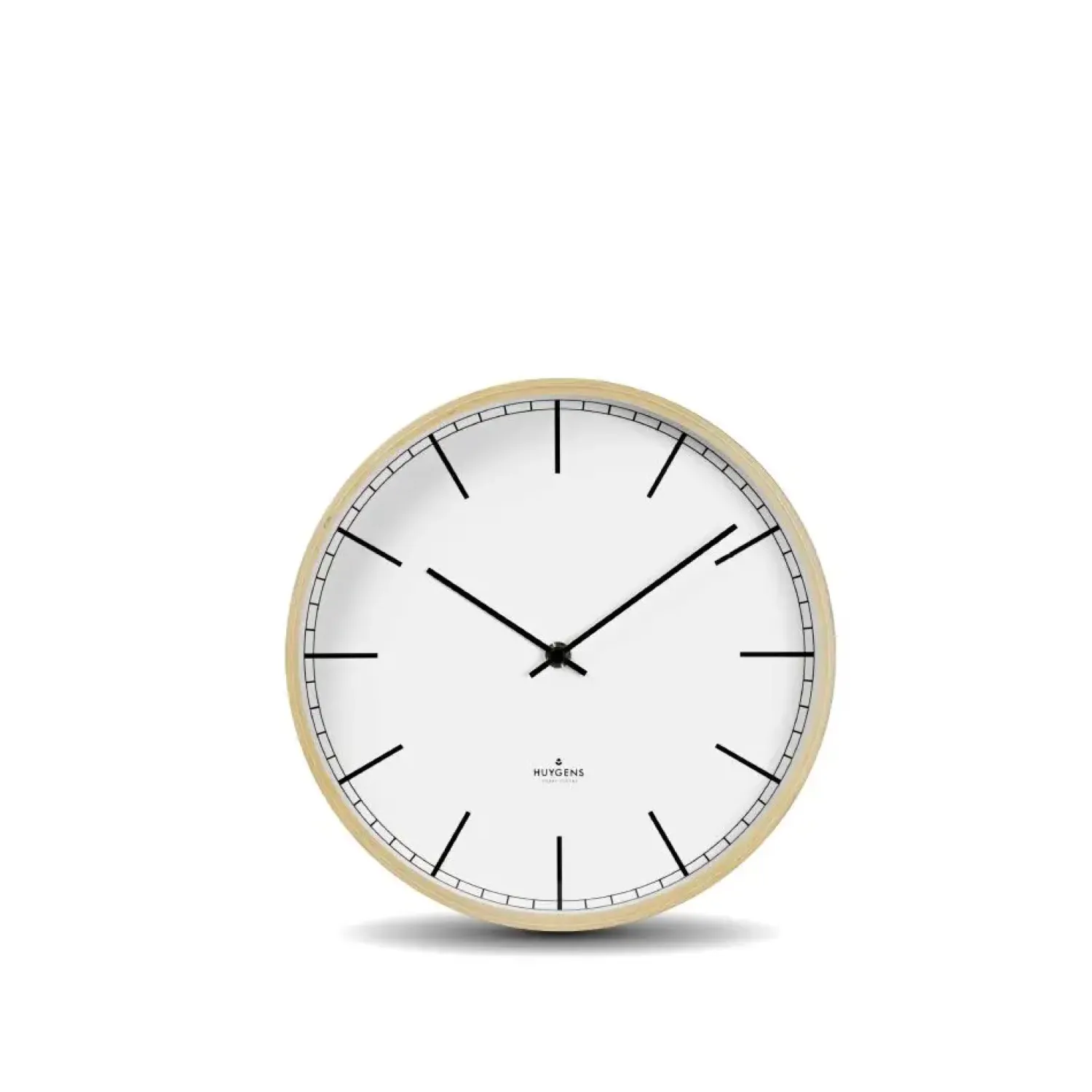 Wood vægur fra Huygens med en slank træramme, gør det klassiske ur særligt elegant. Indvendigt fungerer et japansk urværk af høj kvalitet, der altid viser det rigtige tidspunkt. Derudover genererer uret ingen støj, hvilket gør Wood Index væguret egnet til ethvert rum i huset. En væg i et puristisk design Urets puristiske design afspejles også i tidsvisningen. De smalle, minimalistiske linjer danner en harmonisk forbindelse med den tynde markør og filigran-trægrænsen. Denne kombination af elementer skaber et afbalanceret og behageligt neutralt syn på uret for øjet. Wood Index vægur er lavet af et træfiner, der er sammensat af forskellige træsorter. Den efterfølgende belægning med en beskyttende lak sikrer en elegant finish på uret og gør det ekstra robust.