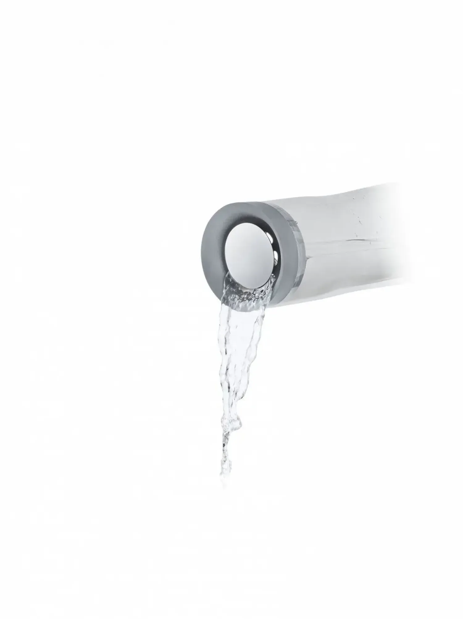 Livligt design, forfriskende funktion: SPLASH-vandkaraffen lever op til sit navn. Låget, lavet af poleret rustfrit stål og silikone i den subtile grå tone Sharkskin, holder isterninger og andre ingredienser sikkert inde i glasbeholderen. Beriget med citronskiver, mynte eller andre frugter og urter, er vandet ikke kun tilsat smag, men også lyst op i den dekorative karaffel. Fås i fem ekstra farver.