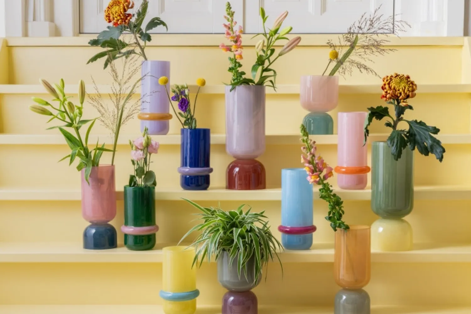Denne vase fra Present Time har en blød blå farve, der let kan kombineres med forskellige indretningsstile. Glasmaterialet giver vasen et stilfuldt udtryk, og den lyse pink ring omkring midten tilføjer et kunstnerisk touch til designet.
