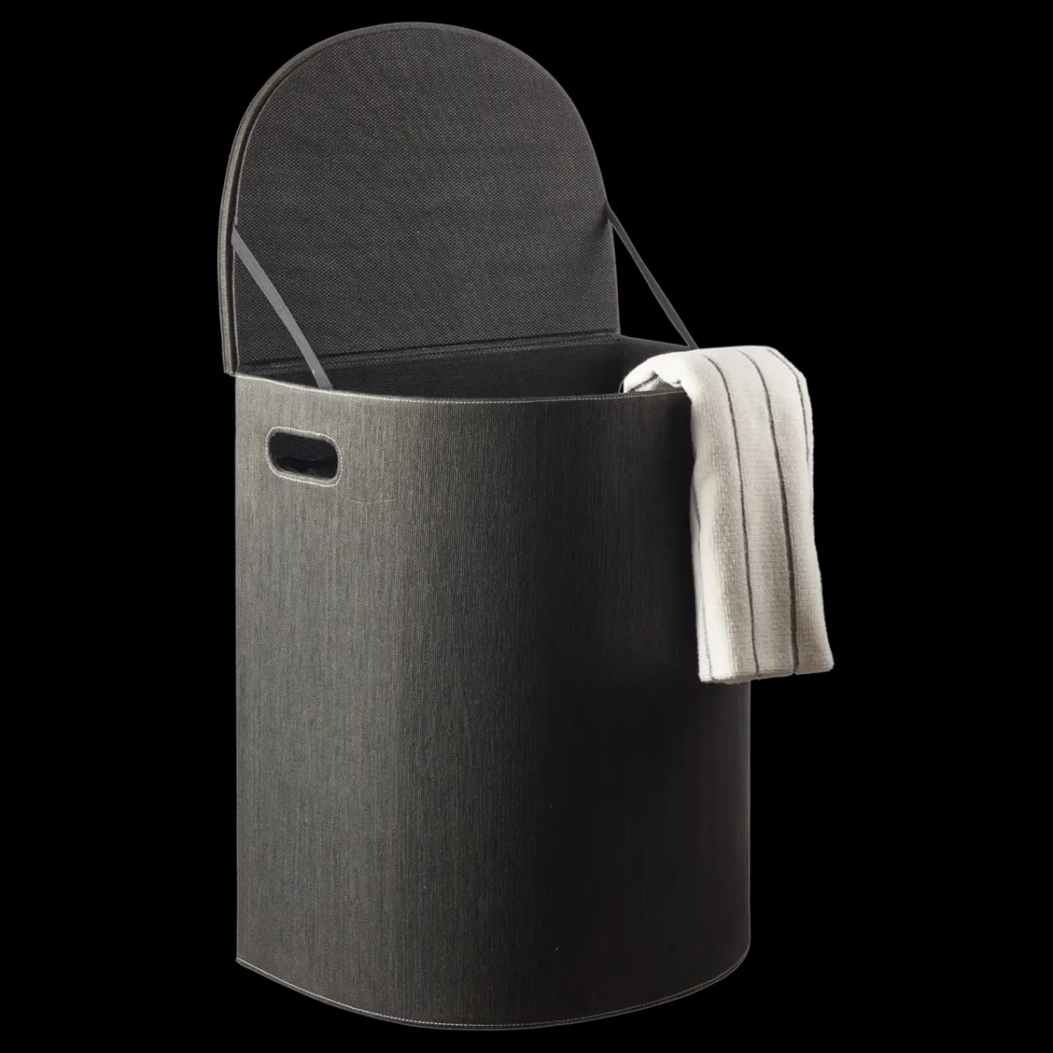 - Vasketøjskurven er lavet af sorte papirfibre og pap