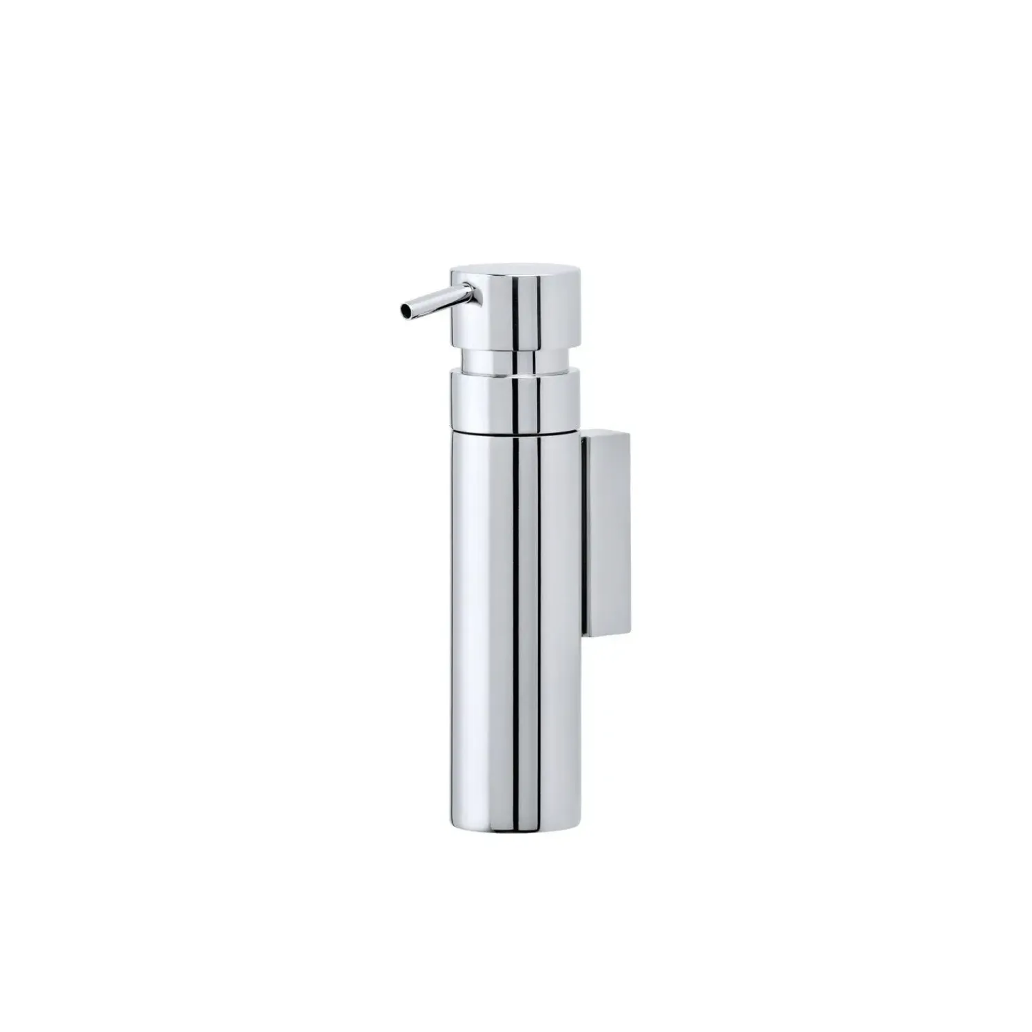 Sæbedispenseren med vægholder fås i poleret eller mat rustfrit stål og er smukt enkel og elegant. Takket være dens lille diameter passer den ind i selv de mindste rum.