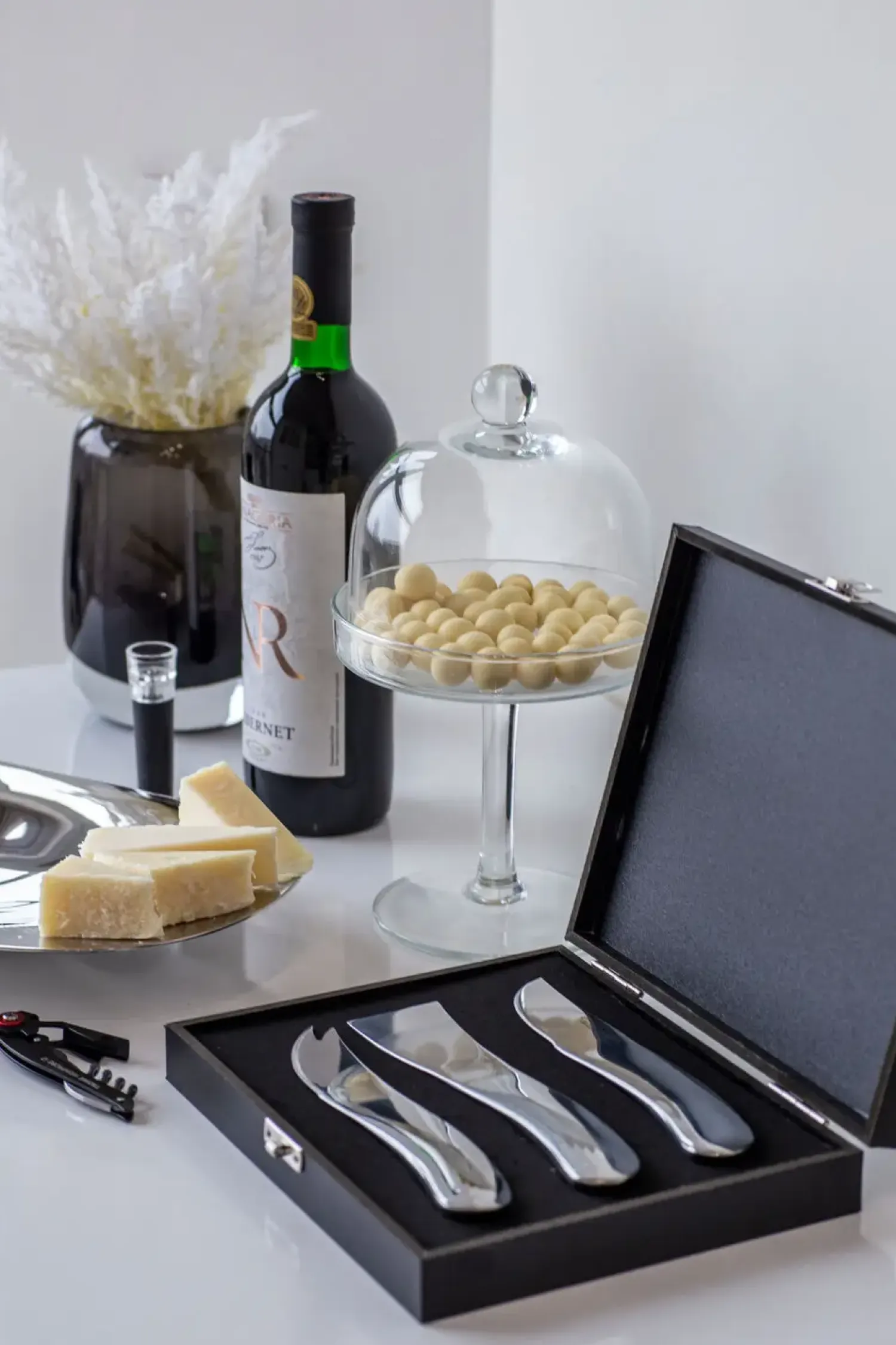 Med dette sæt får du tre osteknive, der kan bruges til forskellige formål ved ostebordet. Den elegante trææske gør sættet velegnet som gave eller som en tilføjelse til dit eget køkken. Uanset om du er vært for en intim middag eller en større sammenkomst, vil disse osteknive tilføje et strejf af elegance til enhver anledning. De bølgeformede håndtag og de polerede klinger skaber et moderne og stilfuldt udtryk, der kan bidrage til at gøre osteanretningen til et visuelt tiltalende element på bordet.