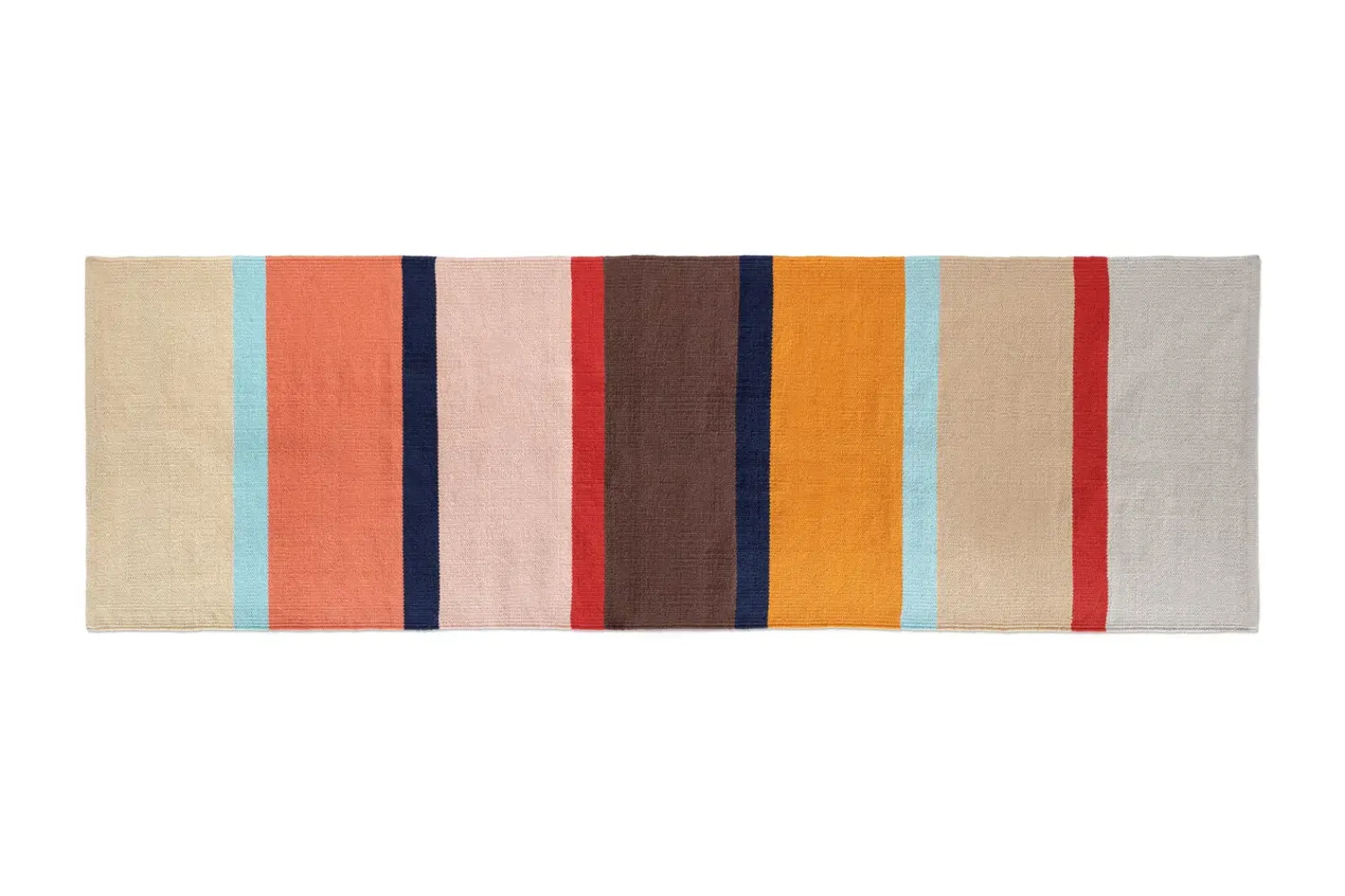 Zaza-tæppet udmærker sig ved sin unikke karakter og øgede holdbarhed. Det flade design på 1 cm i højden sikrer, at tæppet passer perfekt ind i smalle passager uden at hindre døråbninger. Bomuldsmaterialet er særligt velegnet til områder med høj trafik, da det er slidstærkt og modstandsdygtigt over for daglig brug. De flerfarvede vertikale striber tilføjer et dynamisk element til din indretning og skaber variation i rummet.