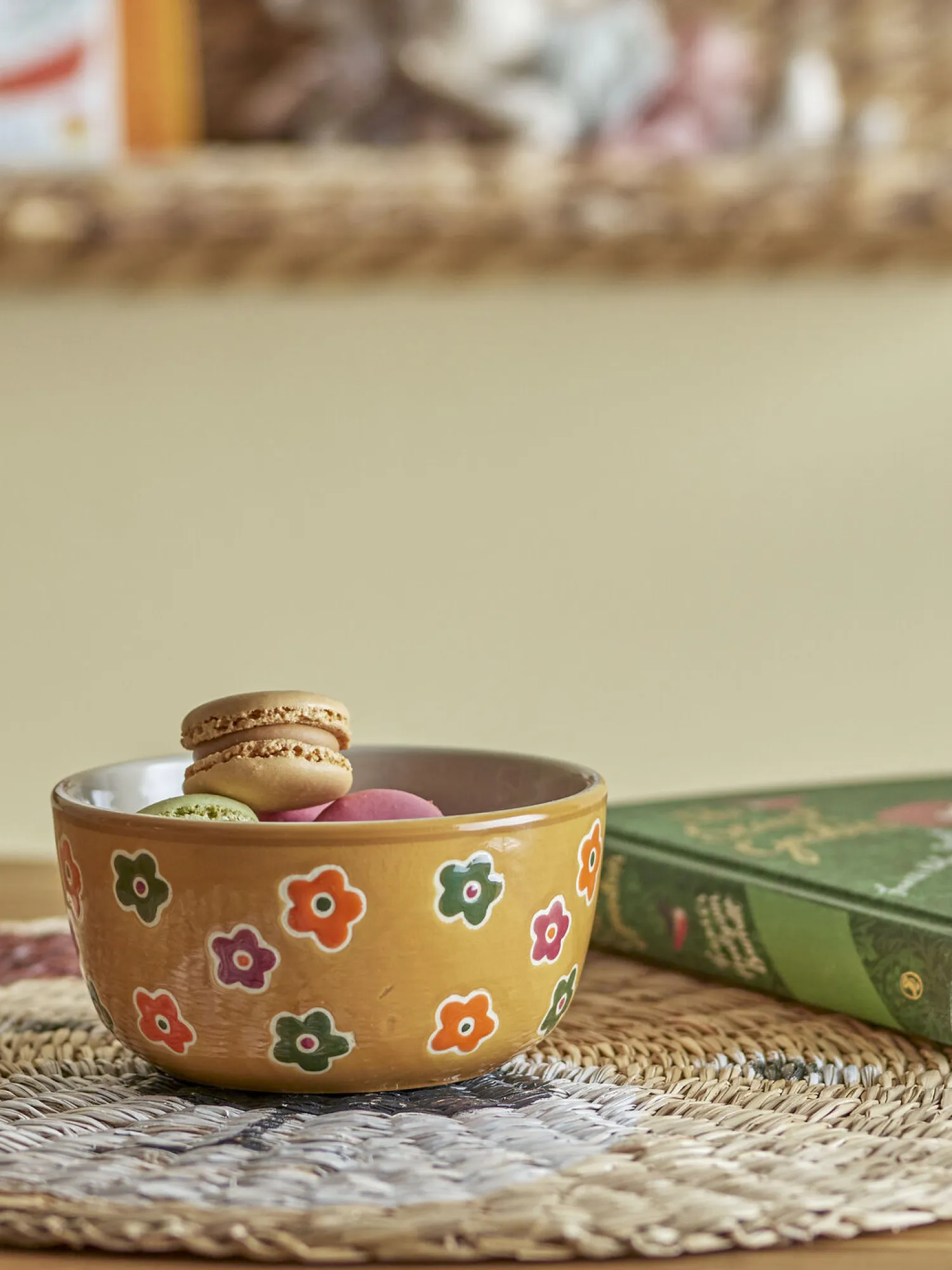 Addy Bowl fra Bloomingville MINI kommer i en lysebrun nuance og viser et hyggeligt design med håndmalede blomster i varme toner, hvilket gør hver servering lidt mere speciel. Den er ideel til morgenmad, men også perfekt til at servere søde og salte snacks. Med sin perfekte størrelse til børn vil den uden tvivl blive et hit ved spisebordet. Hver skål vil være unik, da hvert penselstrøg tilføjer et personligt præg og skaber små variationer i designet.