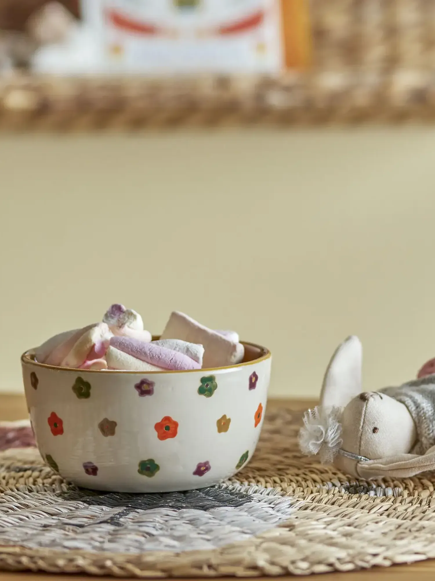 Addy Bowl fra Bloomingville MINI har et hyggeligt design med håndmalede blomster i dejlige farver, hvilket gør hver servering lidt mere speciel. Den er ideel til morgenmad, men også perfekt til at servere søde og salte snacks. Med sin perfekte størrelse til børn vil den uden tvivl blive et hit ved spisebordet. Hver skål vil være unik, da hvert penselstrøg tilføjer et personligt præg og skaber små variationer i designet.