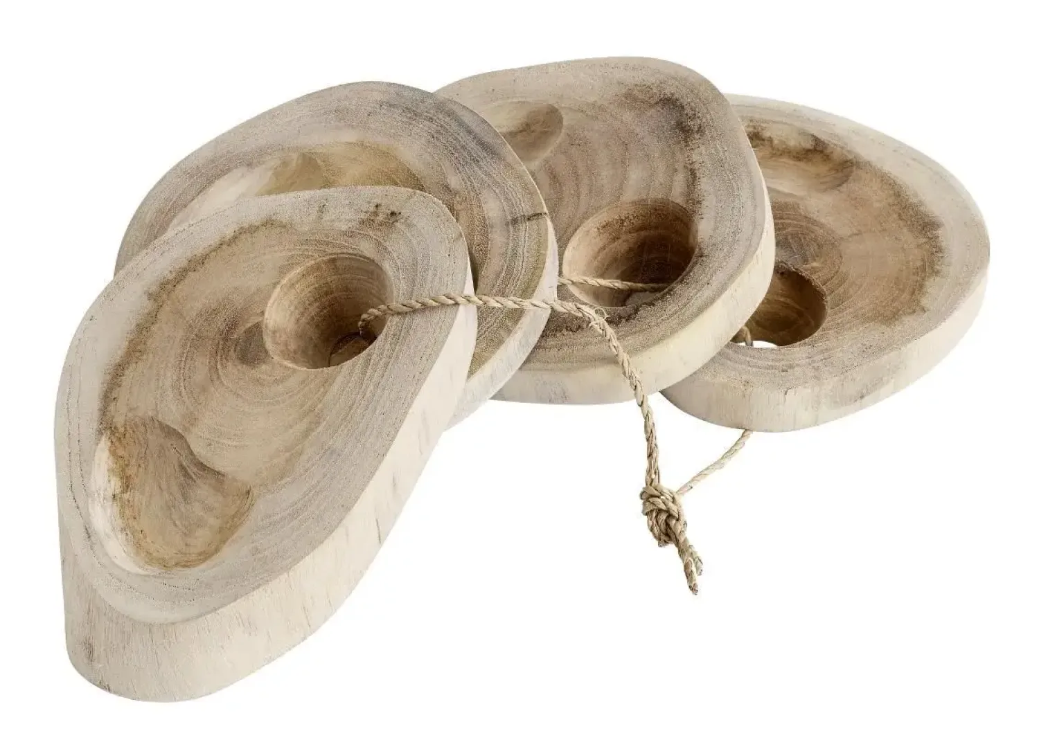Muubs – Æggebæger – Organic – Natur – (Sæt af 4) er en praktisk tilføjelse til dit morgenbord. Disse æggebægre i nyt teaktræ kombinerer funktionalitet med et æstetisk design, hvor træets naturlige årer er synlige og fremhæver materialets karakter.