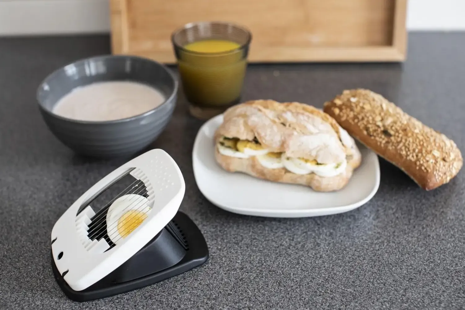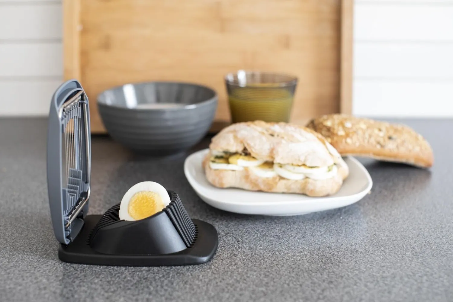 Hvis du ofte laver sandwich, salater eller smørrebrød med æg, er denne æggeskærer et nyttigt redskab. Den skærer hurtigt og præcist gennem kogte æg, så du sparer tid i køkkenet og får ensartede resultater.