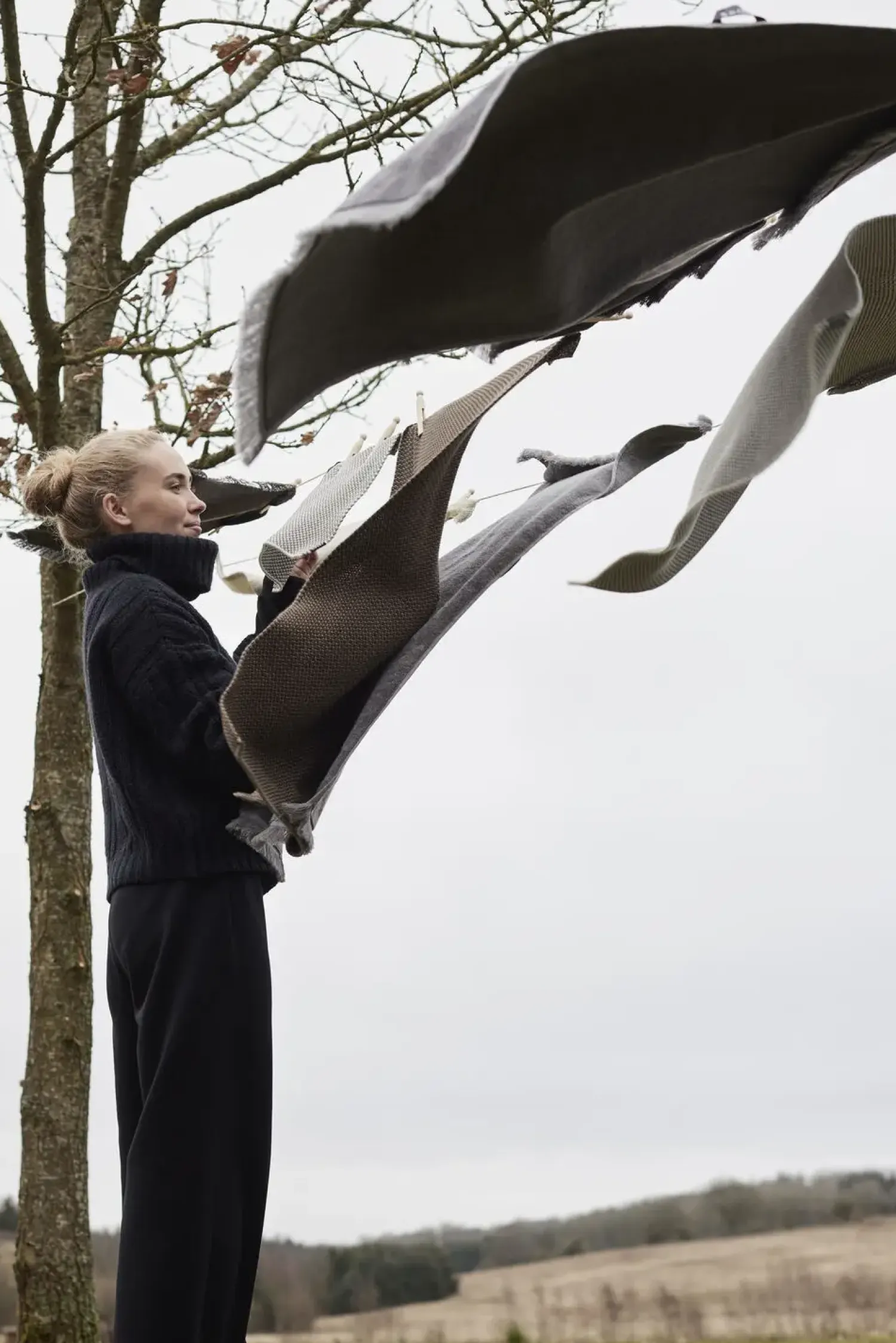 Der er intet mere beroligende og luksuriøst end at tørre sig i et Aiho håndklæde efter et opfriskende brusebad. Deres tykke, bløde kvalitet giver en følelse af varme og kærlig omsorg, der beroliger sjælen og skaber en dyb følelse af ro og velvære.Håndklædet er fremstillet af 100 % økologisk bomuld, som er meget absorberende og skabt til at holde. Aiho håndklædet er designet i en æstetisk mørkegrå farve med dekorative frynser i hver ende, der understreger seriens afslappede udtryk. Designets diskrete udtryk tilføjer alsidighed og bringer komfort og varme til hverdagen på badeværelset. Der er en praktisk strop i midten af håndklædet. Tip: Læg håndklæderne i koldt vand i 24 timer, inden du vasker dem første gang. Fibrene åbner sig og giver en bedre sugeevne. Derudover fjerner det overflødig farve, så dine håndklæder ikke smitter af. Vask håndklæderne ved 40°C de første gange for at skåne farven og overfladen.Størrelse: 50×100 cmMateriale: 100% økologisk bomuld. Kvalitet: 550 gsm.Plejeanvisning:Vaskes ved 60 grader. Håndklædet kan tørretumbles. Vaskes med samme farver. Design: Kira Usbeck