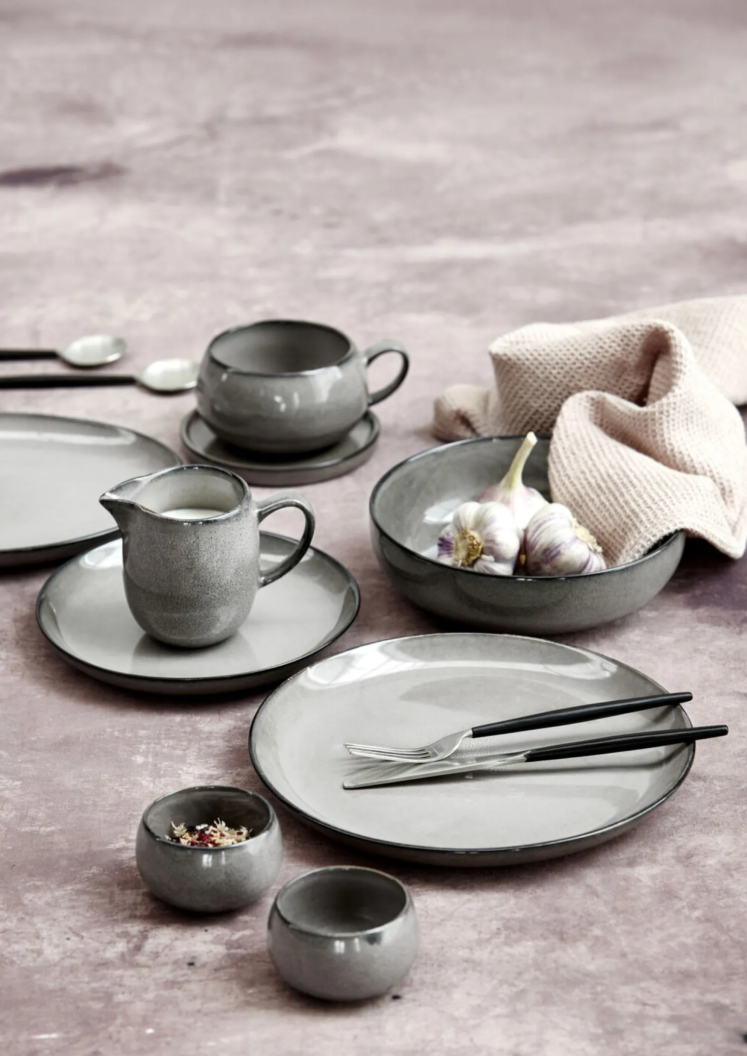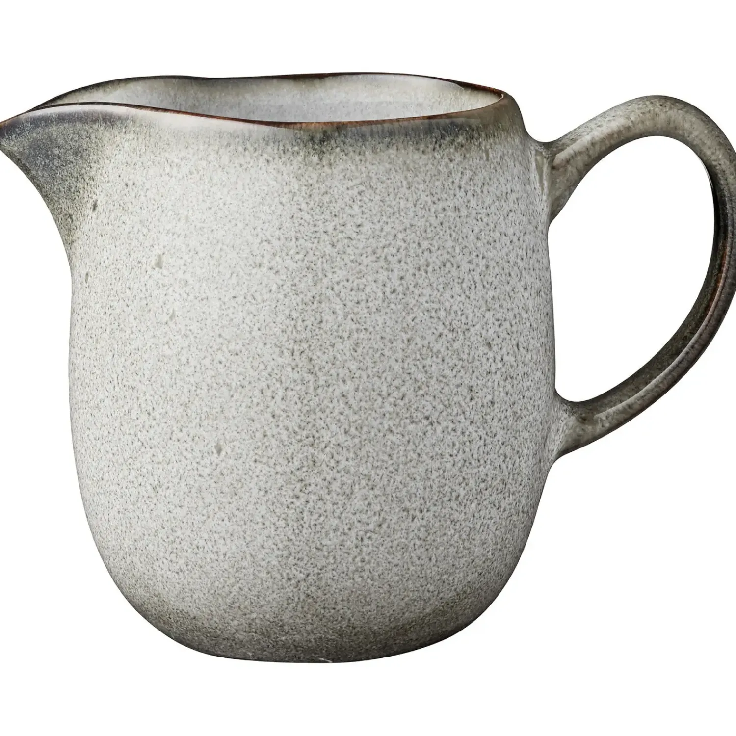 Smuk grå stentøj kande fra LENE BJERRE. Tilføj et islæt af glæde og skævhed med denne Amera kande, som måler L13,5xB8xH10,5 cm. og kan indeholde 30 cl. Med sine rolige farver og bløde organiske former, vil kanden med garanti skabe en hyggelig stemning ved dit bord. Denne kande er en del af Amera serien. Charmen og kendetegnet for produkterne i Amera serien er, at produkterne er belagt med dobbelt reaktiv glasur. Dette betyder af der kan forekomme variationer i farve og udseende fra produkt til produkt.