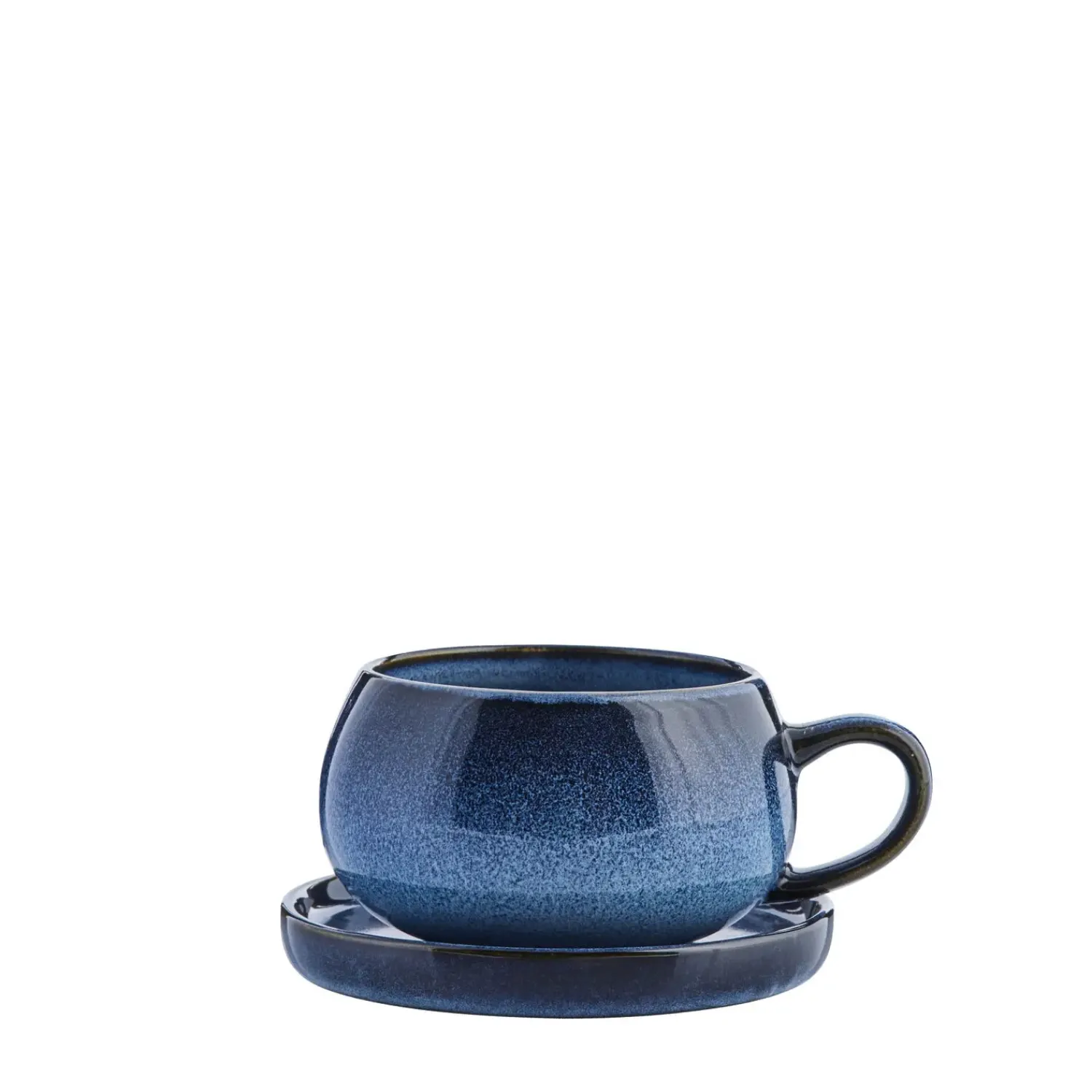 Smuk blå stentøj kop/underkop fra LENE BJERRE. Tilføj et islæt af glæde og skævhed med denne Amera kop/underkop, som måler H7,5xØ14 cm. og kan indeholde 40 cl. Med sine rolige farver og bløde organiske former, vil koppen med garanti skabe en hyggelig stemning ved dit bord. Denne kop/underkop er en del af Amera serien. Charmen og kendetegnet for produkterne i Amera serien er, at produkterne er belagt med dobbelt reaktiv glasur. Dette betyder af der kan forekomme variationer i farve og udseende fra produkt til produkt.