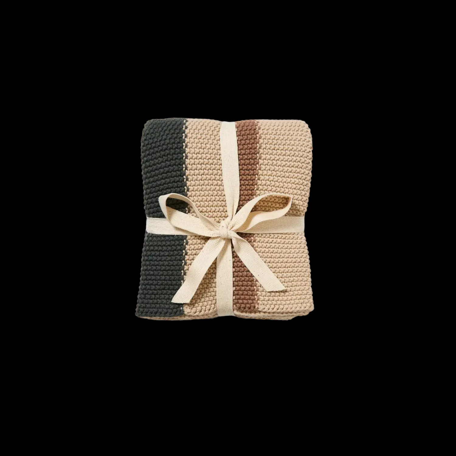 Hvis du søger et køkkenhåndklæde uden kunstige materialer, er dette strikket uden mikrofibre eller plastik. Den økologiske bomuld giver en blød tekstur, mens det to-tonede design med grønne og brune striber passer ind i en harmonisk køkkenindretning. Håndklædet måler 50 x 80 cm og giver god plads til hverdagens opgaver.