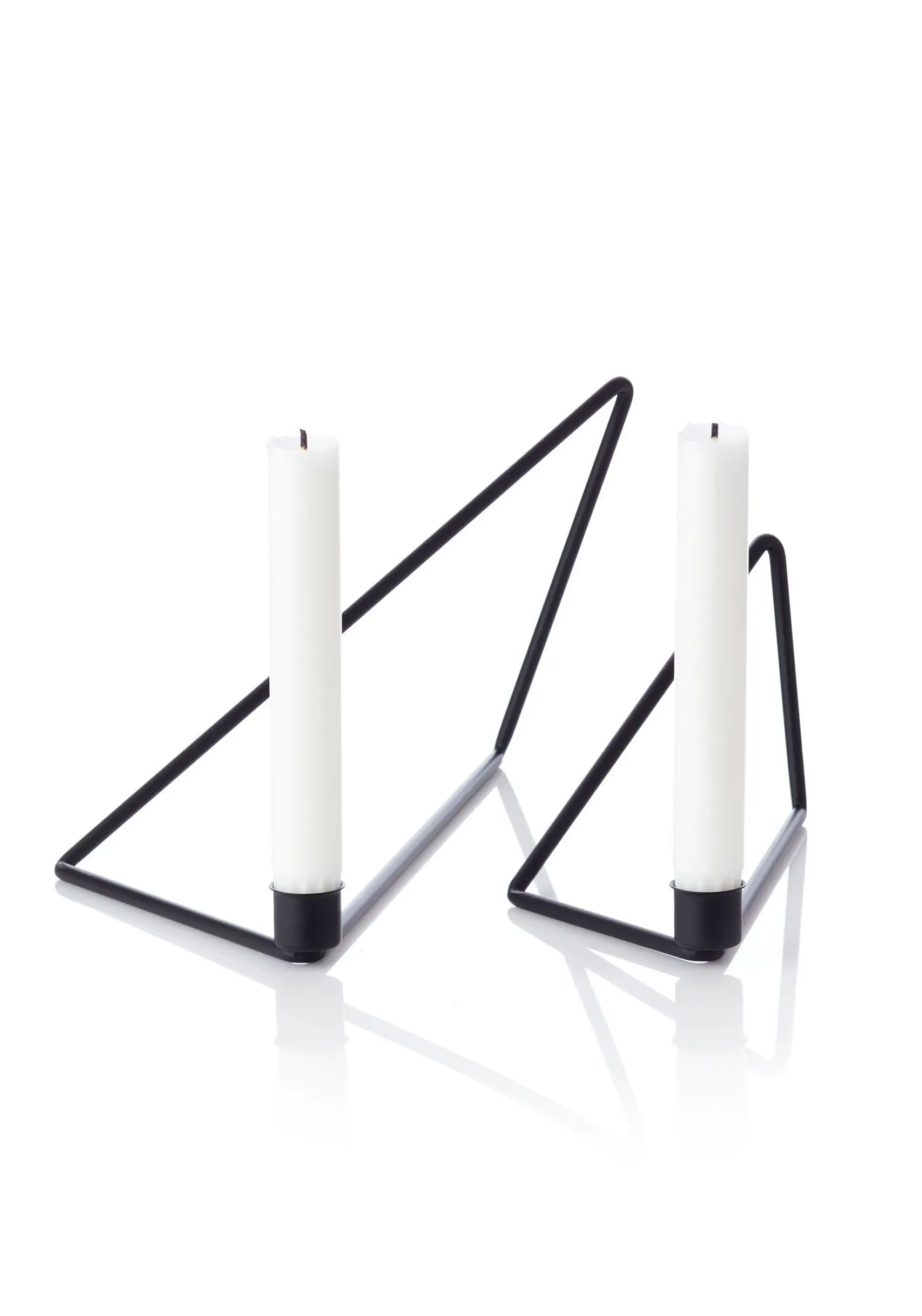 Denne geometriske lysestage i pulverlakeret jern holder et enkelt stearinlys og måler 31 x 12 x 15 cm. Det trekantede design skaber en interessant lyseffekt, mens den sorte finish gør den nem at placere i dit hjem.