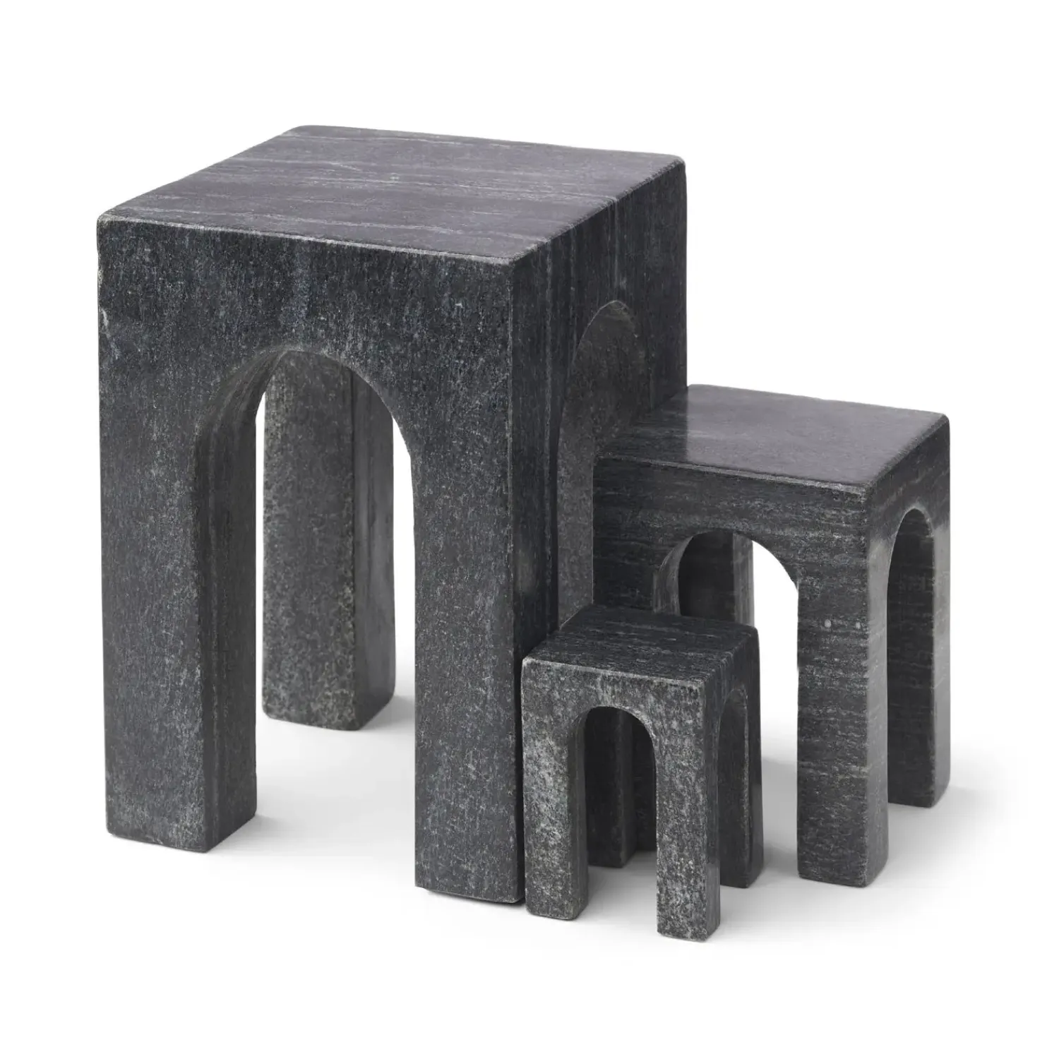 Smukke skulpurelle bogstøtter fra Gejst. Arkis består af 3 marmor skulpturer, der er designet til at fungere som bogstøtter eller enkeltstående designobjekter i hjemmet.