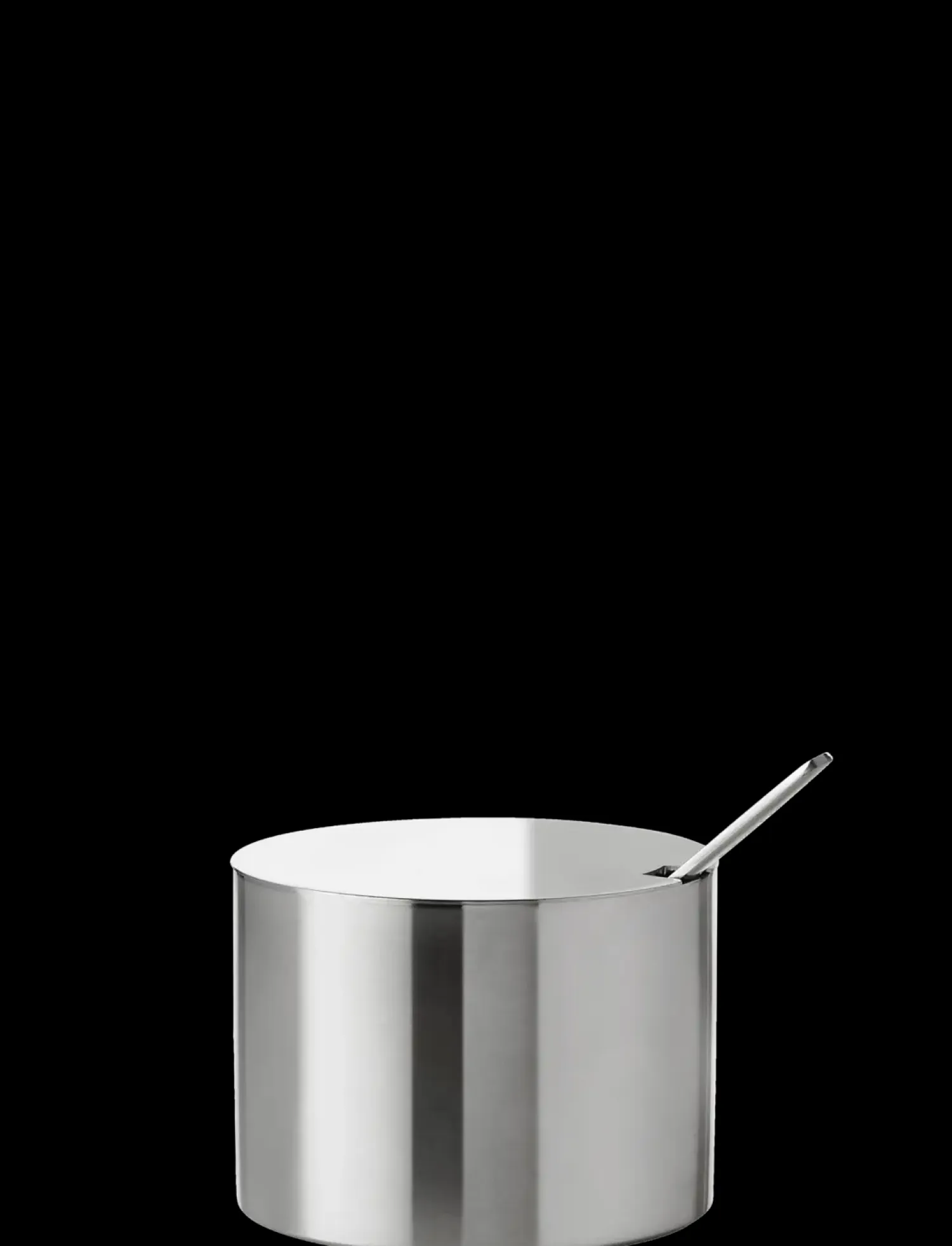 Arne Jacobsens sukkerskål i klassisk cylindrisk design. Sukkerskålens låg forhindrer, at der kommer støv i skålen, samt at skeen kan blive stående uden besvær. Den lille skål kan ligeledes anvendes til små snacks eller småkager. Som resten af Cylinda-line serien er sukkerskålen skabt i rustfrit stål.
