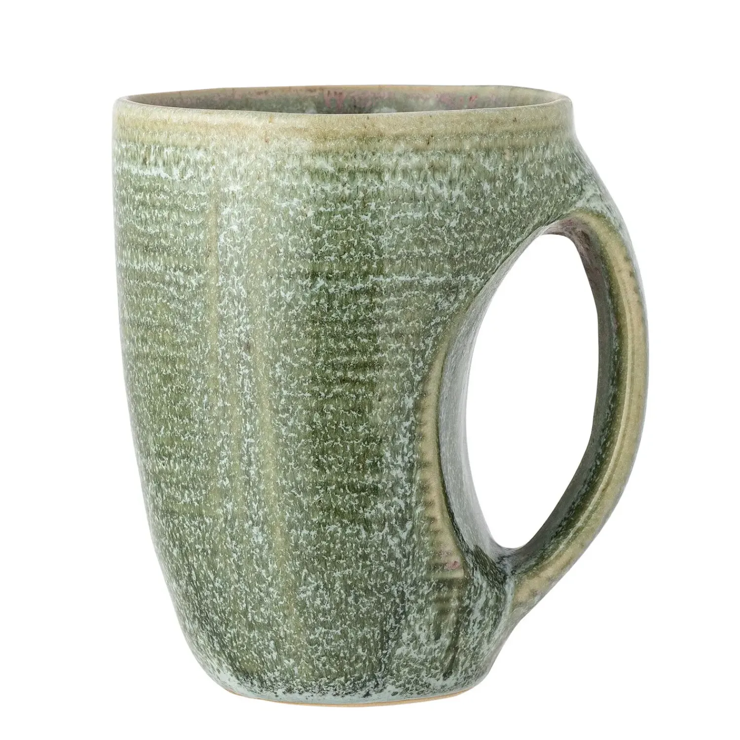 Med en rummelig kapacitet på 500 ml giver dette stentøjskrus dig plads til en god portion af din foretrukne varme drik. Den grønne glasur har naturlige variationer, der gør hvert krus unikt.