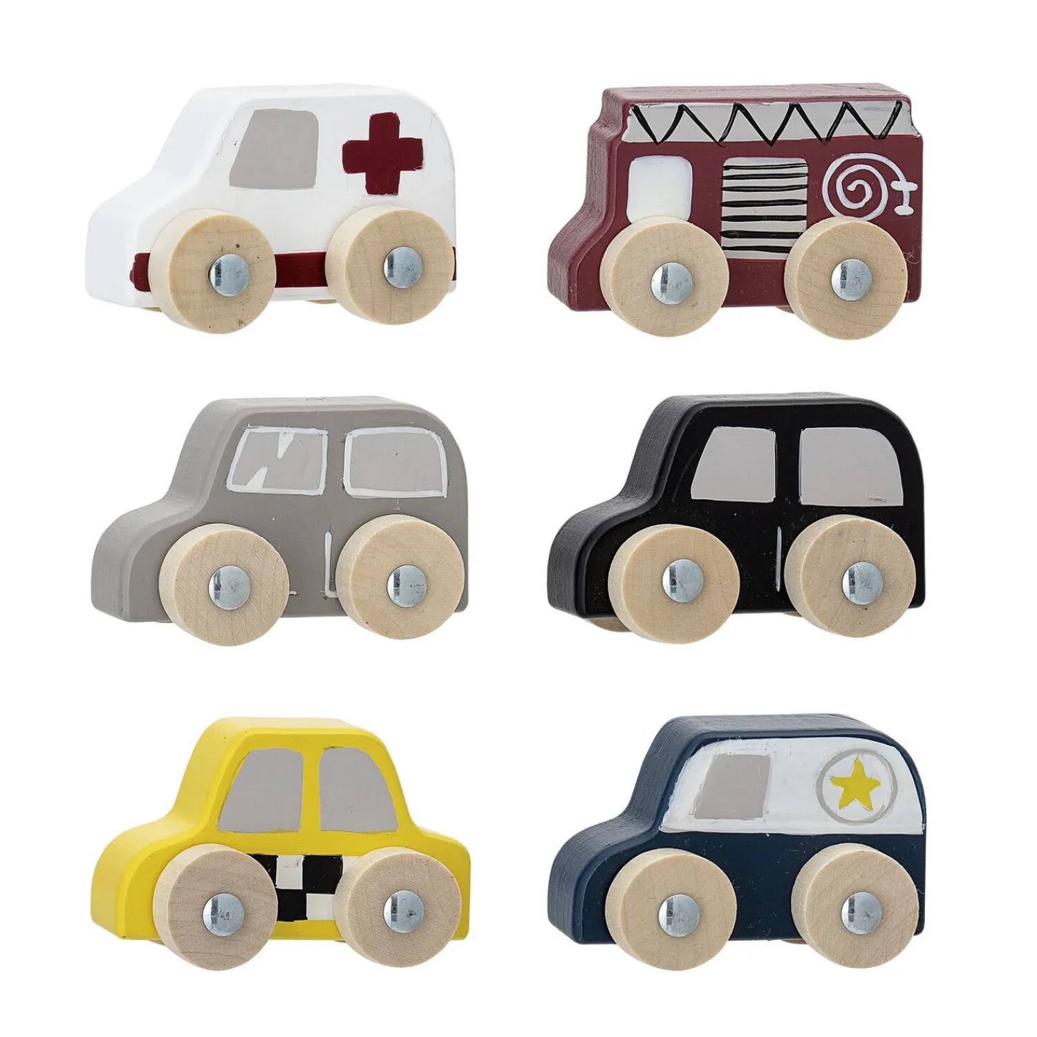 Avin legetøjssættet består af forskellige køretøjer lavet i MDF i bløde farver. Dette bilsæt kommer i en gavepose og opmuntrer børn til at bruge og udvikle deres fantasi, mens de spiller rollespil.