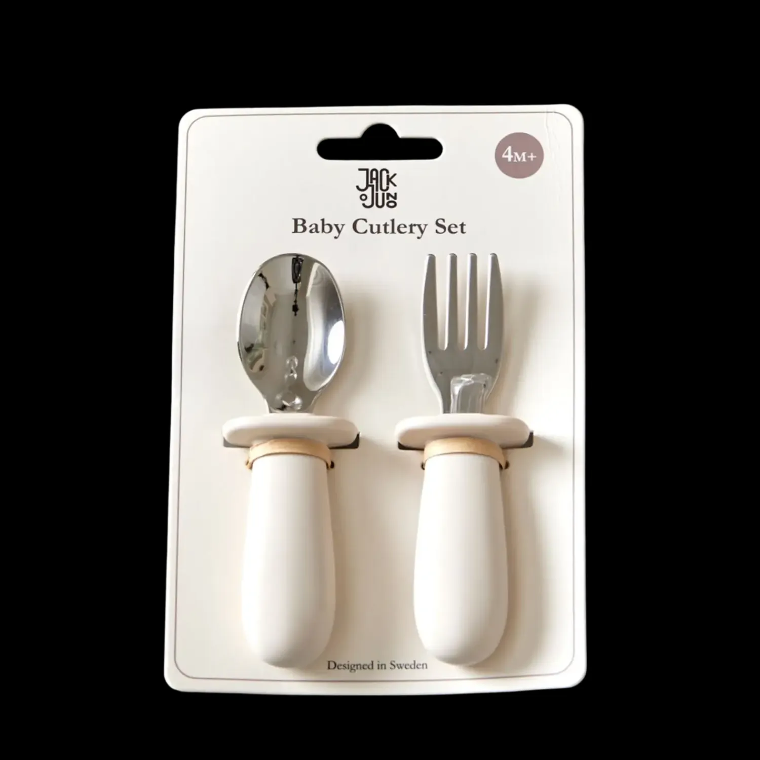 Jack o Juno – Baby Bestik Sæt – Cream er velegnet til babyer fra 4 måneder, når de begynder at udforske madens verden. Dette sæt er designet til at give babyer en behagelig introduktion til selvstændig spisning med fokus på sikkerhed og komfort. Med sin cremefarvede finish passer sættet godt ind i enhver spisesituation og gør måltidet til en visuel fornøjelse for både baby og forældre.