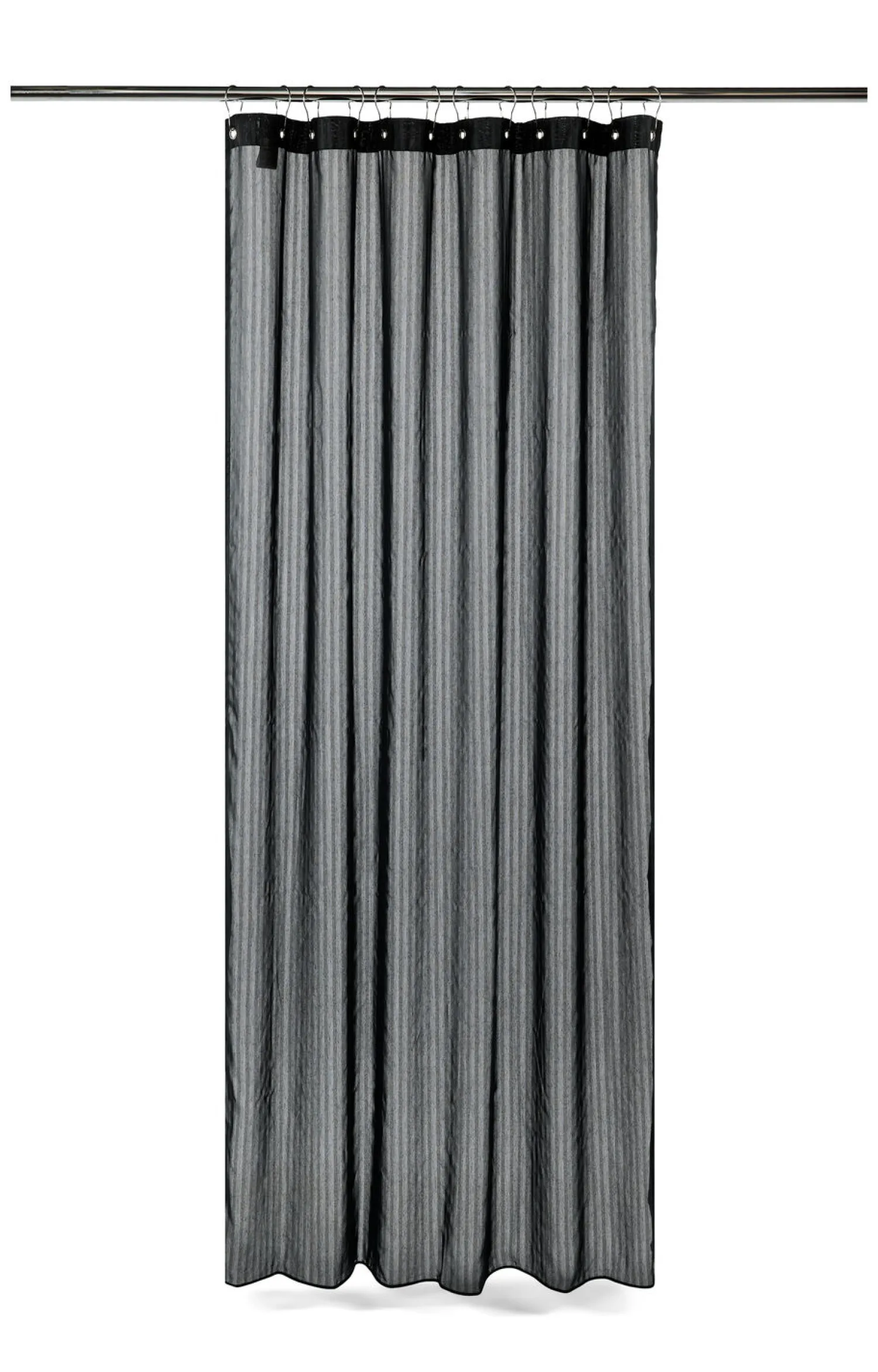 De vævede striber i tone-i-tone sort skaber et roligt udtryk i dit badeværelse. Stoffets kvalitet sikrer, at badeforhænget holder sig pænt i lang tid, og de praktiske mål passer til de fleste standardbadeværelser.