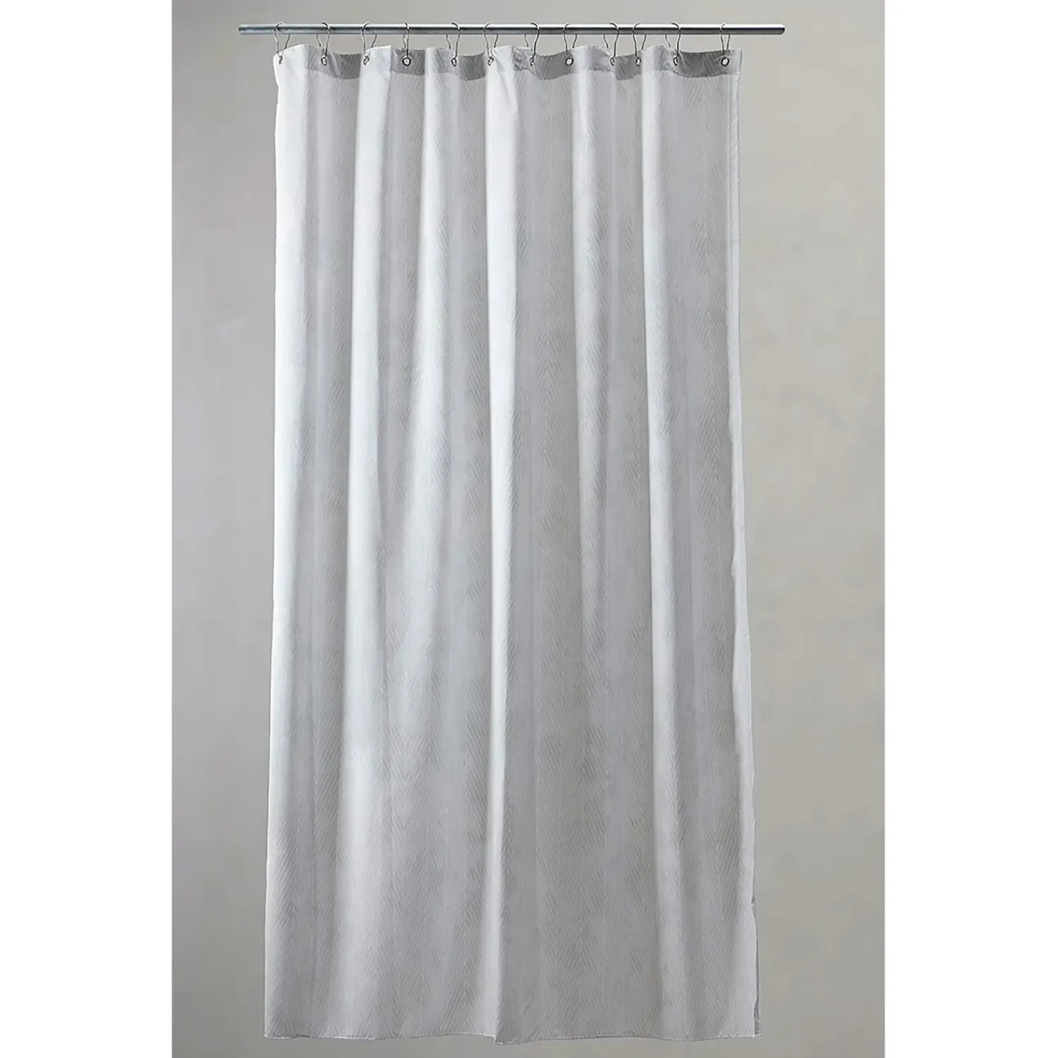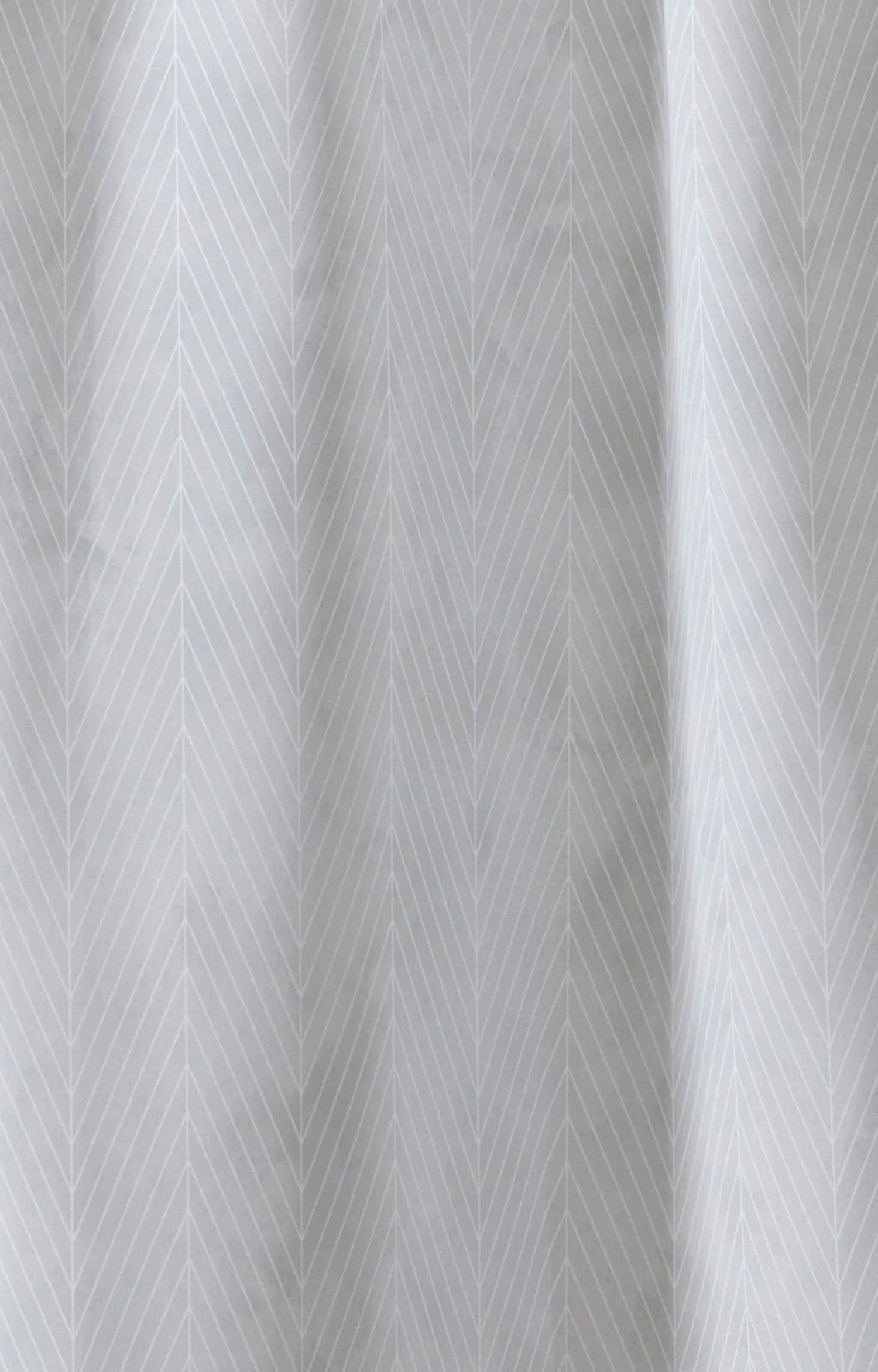 Det trykte sildebensmønster med vandeffekt tilfører et diskret designelement til dit badeværelse. Den lyse grå nuance harmonerer med forskellige indretningsstile, mens det antibakterielle materiale holder forhænget friskt i længere tid.