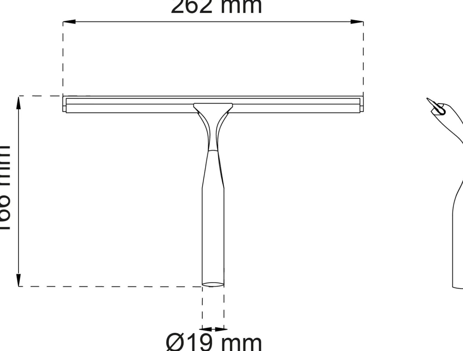 Smart gummiskraber med selvklæbende krog. Blødt, gennemsigtigt silikone blad, der er skånsomt mod overfladen. Lang levetid.