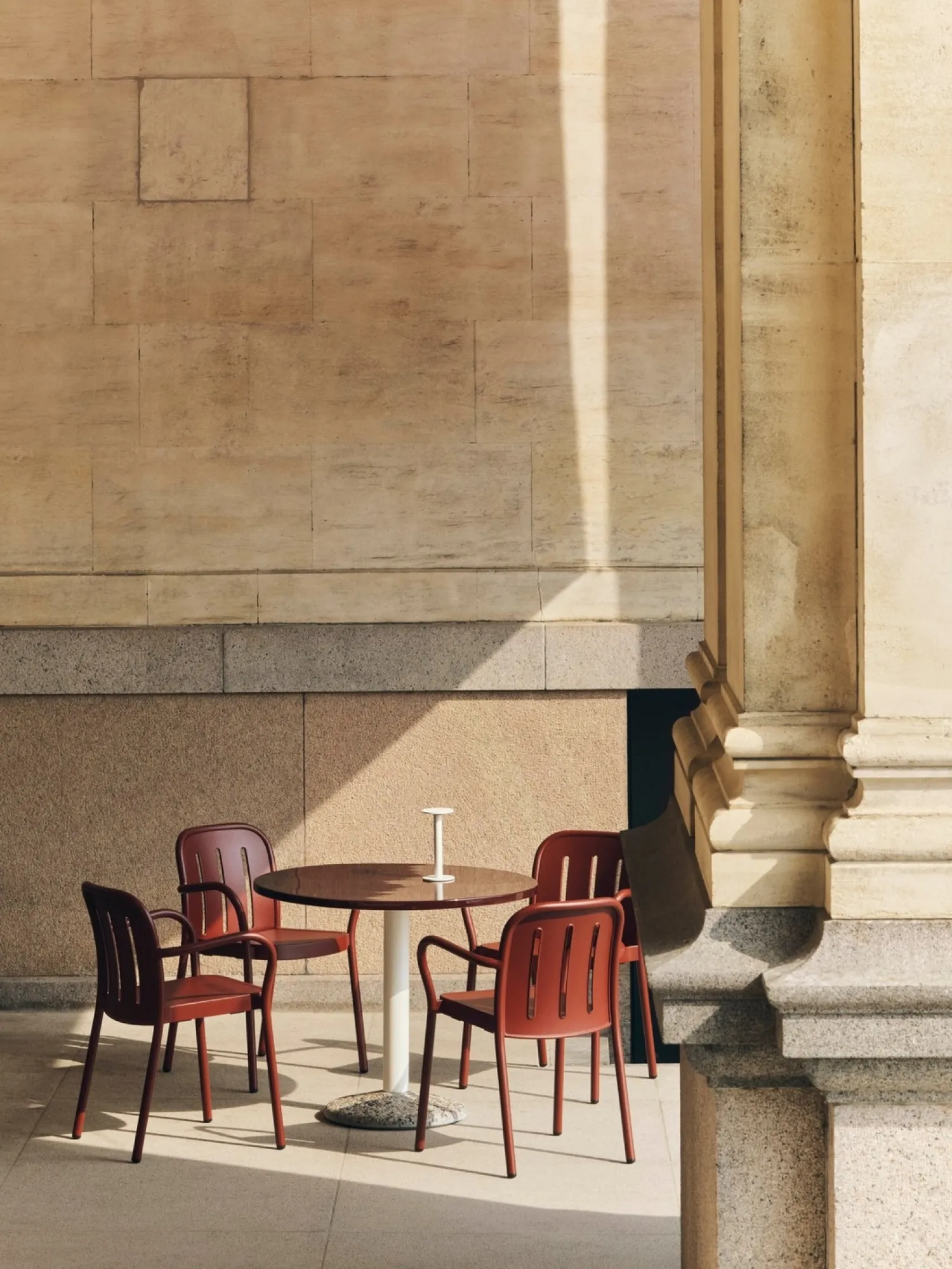 HAY’s bærbare lampe Host måler 22 cm i højden, hvilket gør den kompakt nok til at flytte rundt, men høj nok til at give funktionel belysning. Med en bredde og længde på 10 cm passer den på små borde, vindueskarme eller udendørs overflader, hvor pladsen er begrænset.