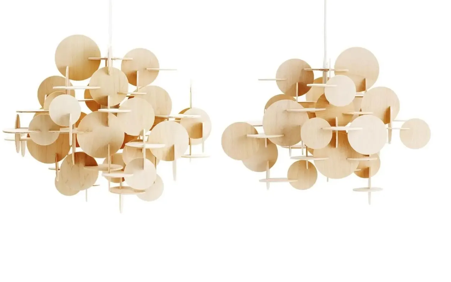 De forskellige størrelser skiver er omhyggeligt placeret, så de danner et dynamisk mønster. Dette giver lampen en særlig karakter, der både fungerer som lyskilde og som et kunstnerisk element i din indretning.
