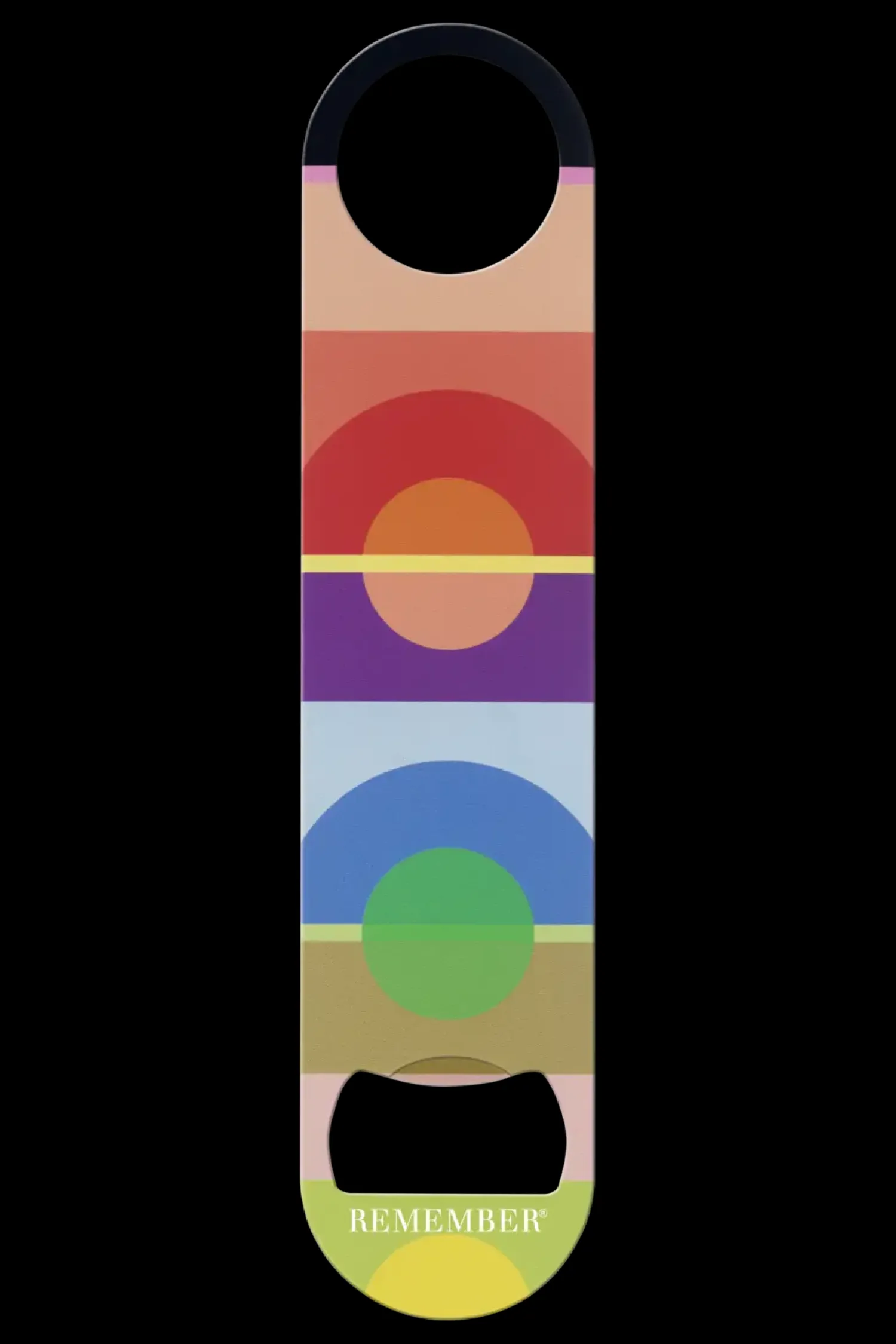 Med sin flade, aflange form glider Bella nemt ned i bestikskuffen eller lommen. De livlige geometriske mønstre i forskellige farver gør flaskeåbneren til et æstetisk tiltalende redskab, mens det robuste rustfrie stål sikrer lang holdbarhed. Den ekstremt slanke profil på kun 0,2 cm i højden gør den utrolig let at håndtere og opbevare. Ordet REMEMBER er trykt på den ene ende, hvilket understreger dens unikke design og mærkeidentitet.