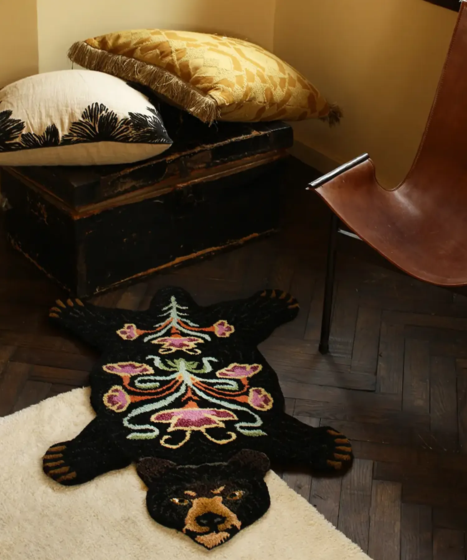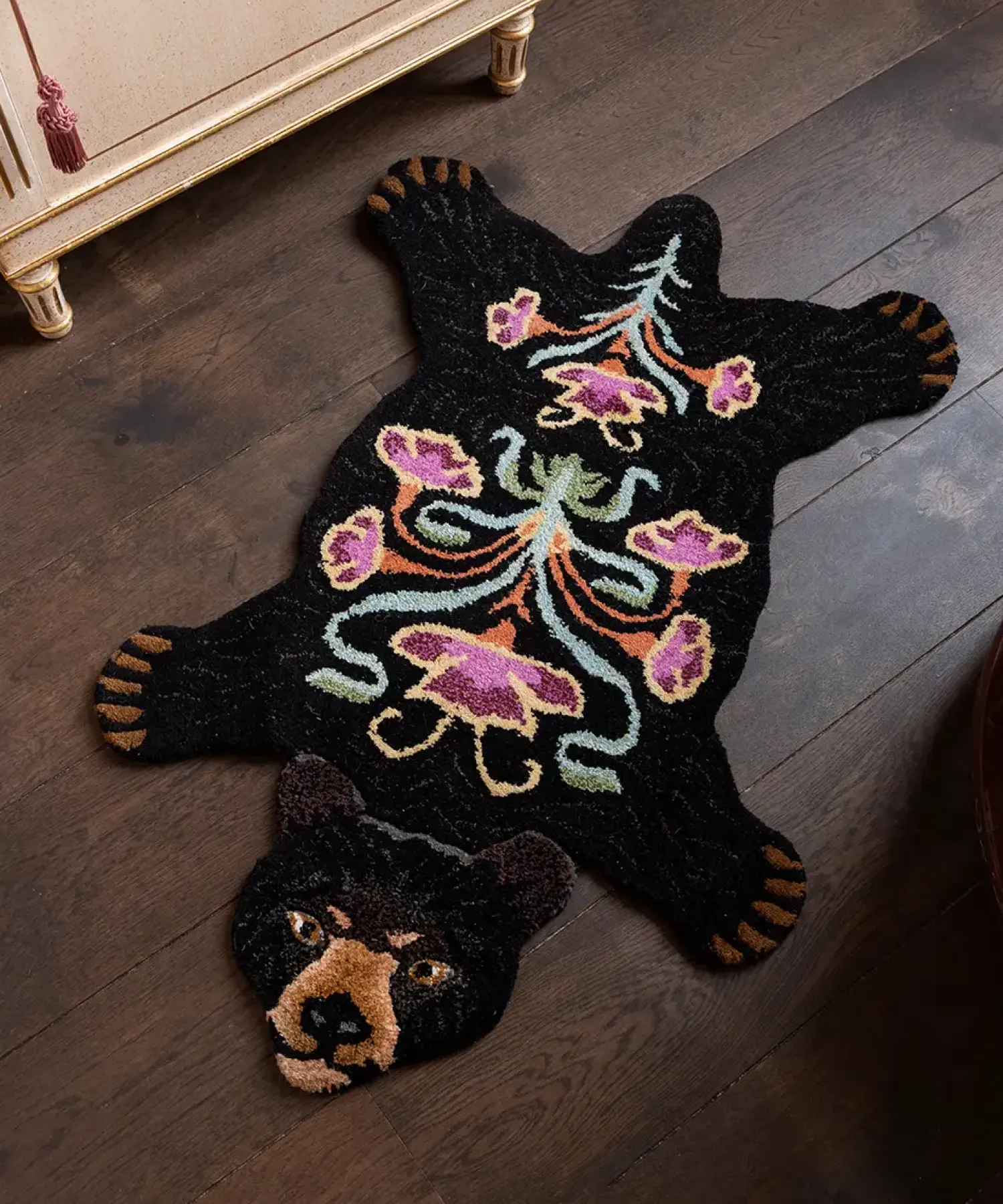 Super fint og sødt bjørne gulvtæppe fra Doing Goods. Tæppet er håndlavet af 100% uld, hvilket gør hvert enkelt tæppe helt unikt. Placer tæppet hvor som helst i hjemmet, brug det eksempel foran pejsen i stuen eller på gulvet i børneværelse. Tæppet kan også hænges op på væggen.