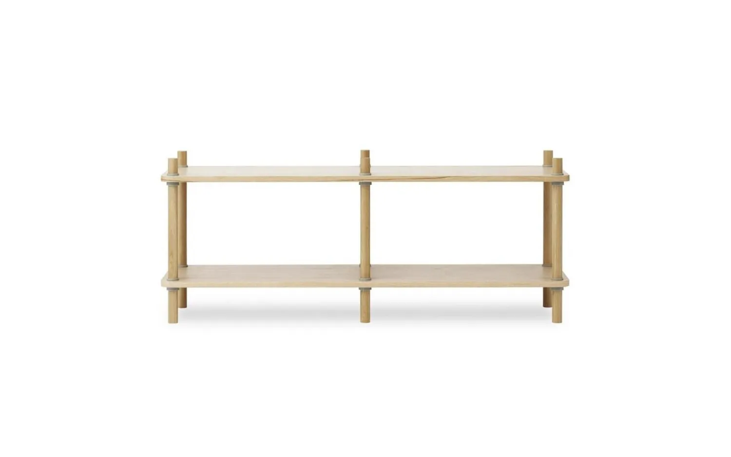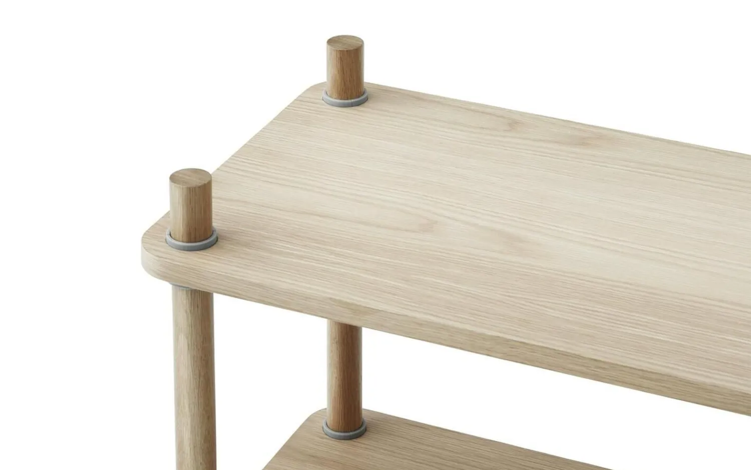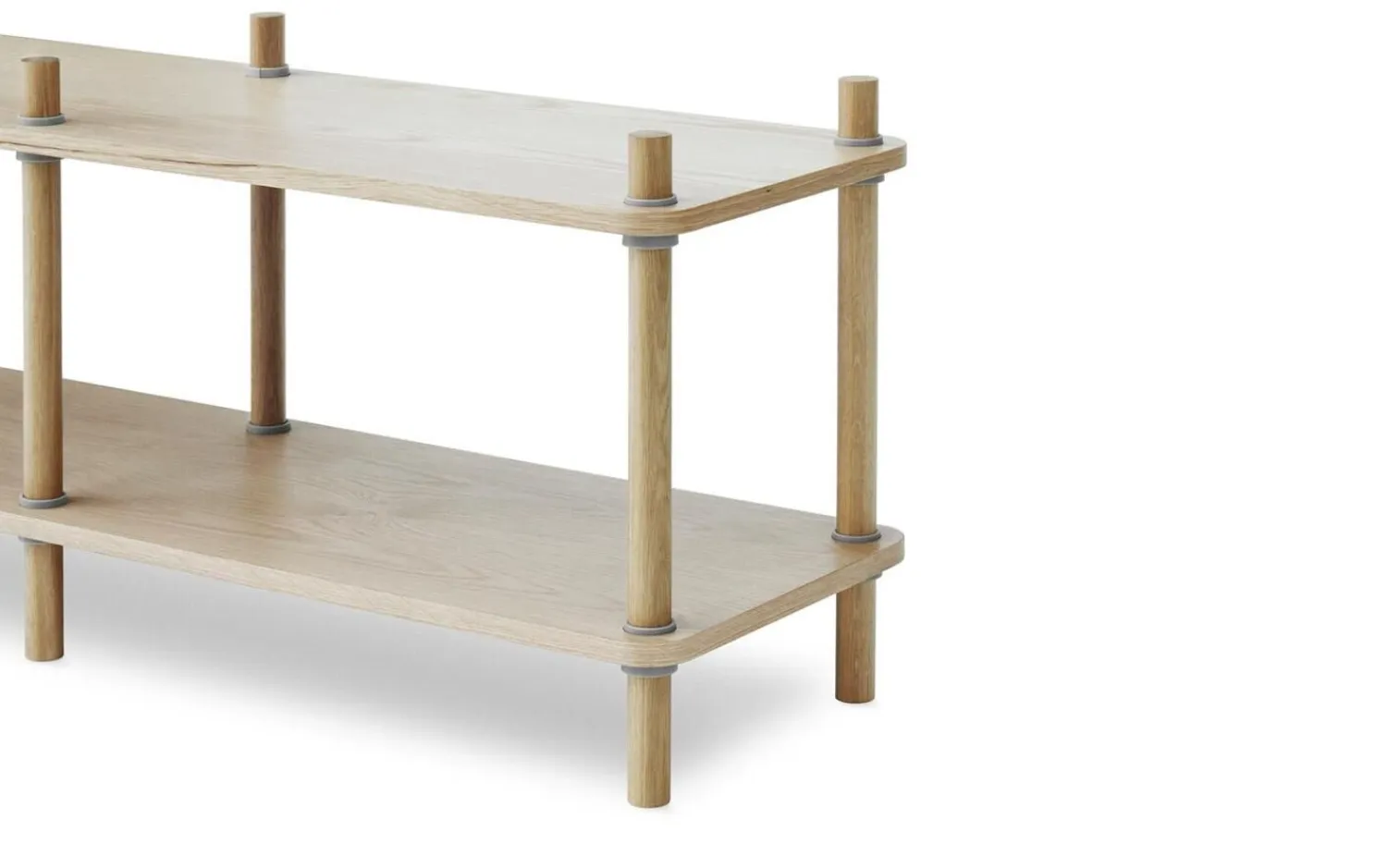 Jam-reolen er sammensat af kun tre forskellige elementer og er et smart og elegant udført design. Det definerende element er en kile, som gør det muligt at samle reolen uden brug af skruer eller værktøj. Hylderne er ganske enkelt sat fast på kilerne, og så tager tyngdekraften og friktion sig af resten.” Vi bliver altid betaget af de simple ting, der omgiver os – simple ting, der fascinerer os, fordi de kun har brug for et minimum af elementer i orden. at blive meget funktionelle slutobjekter. Den ydmyge kile er et godt eksempel på sådan noget. Alene på grund af skrå overflader, der er sat mod hinanden i friktion, er en kile i stand til at understøtte noget så vægtigt og betydeligt som en dør. Det var denne observation Det fik os til at designe en flad reol, der kan samles uden brug af værktøj eller skruer.” – Rudolph Schelling Webermann Jam reolen fås i forskellige størrelser og kan placeres op ad en væg eller bruges som rumdeler. Hyldernes blødt afrundede hjørner giver enheden et indbydende og venligt visuelt udtryk. Med sit alsidige design fungerer reolen lige så godt i små lejligheder som i store kontorer, hvor dens renhed og materialitet skaber et beroligende og behageligt nærvær.