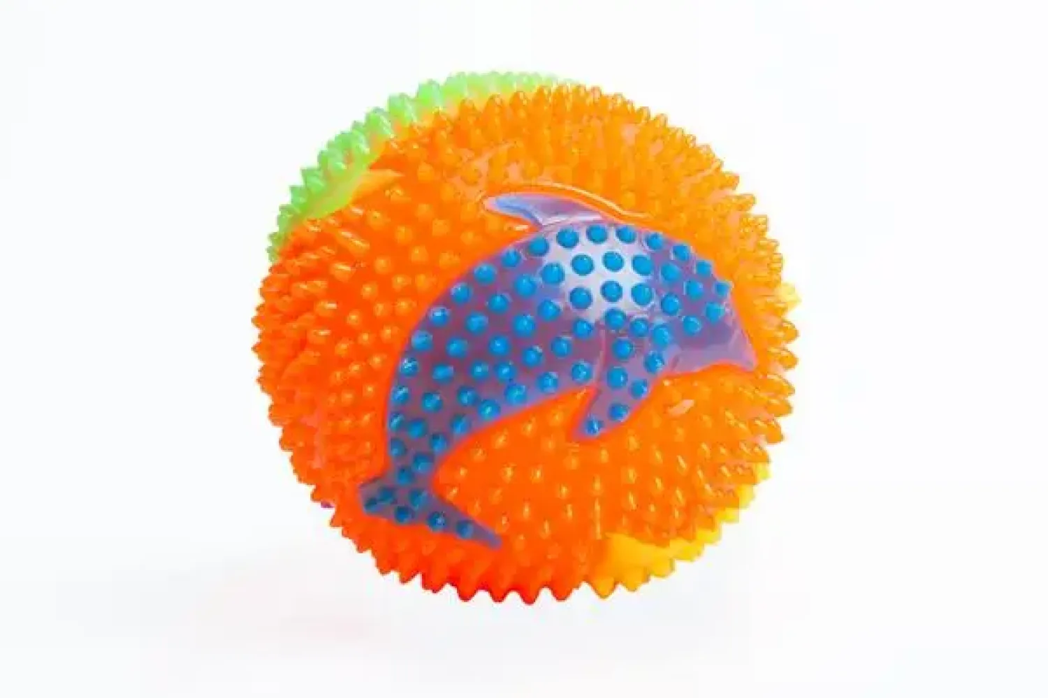 Denne bold er designet med fokus på sjov og interaktiv leg. Den piggede overflade og den lille størrelse gør den nem at gribe for børn. Det indbyggede lys tilføjer et element af overraskelse og glæde til hvert kast, hvilket kan gøre legen mere engagerende.