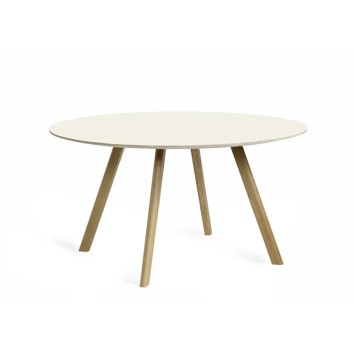 Den runde form skaber naturlig interaktion mellem alle omkring bordet. Linoleumoverfladen er særligt modstandsdygtig over for daglig brug og kræver minimal vedligeholdelse, så du kan fokusere på at nyde måltidet.