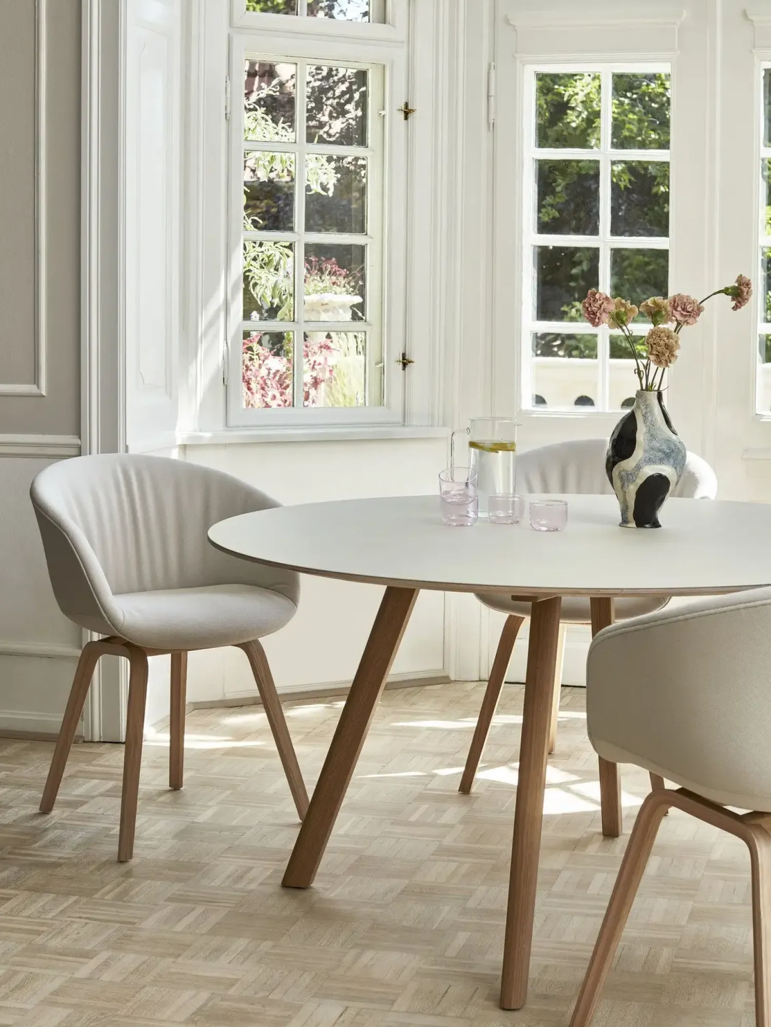 Dette runde spisebord fra HAY’s Copenhague-serie har en diameter på 140 cm, hvilket giver god plads til 6-8 personer omkring bordet. Med en højde på 74 cm sikrer bordet en behagelig siddestilling ved sociale sammenkomster.