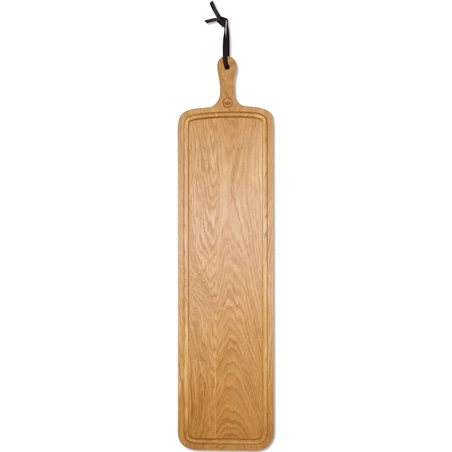 Et brødbræt med den perfekte størrelse til at dele et måltid med familie og venner. Præsenter din ret på dette bræt og imponer dine middagsmissioner. Eller brug den som skærebræt under forberedelserne. Selv at bære, som en serveringsbakke. Brug på 2 sider: den ene side til at skære, den anden side til en luksuriøs præsentation. Ikke til brug i mikrobølgeovn, ovn eller opvaskemaskine. 100% massiv eg. Størrelse: 19×70 cm
