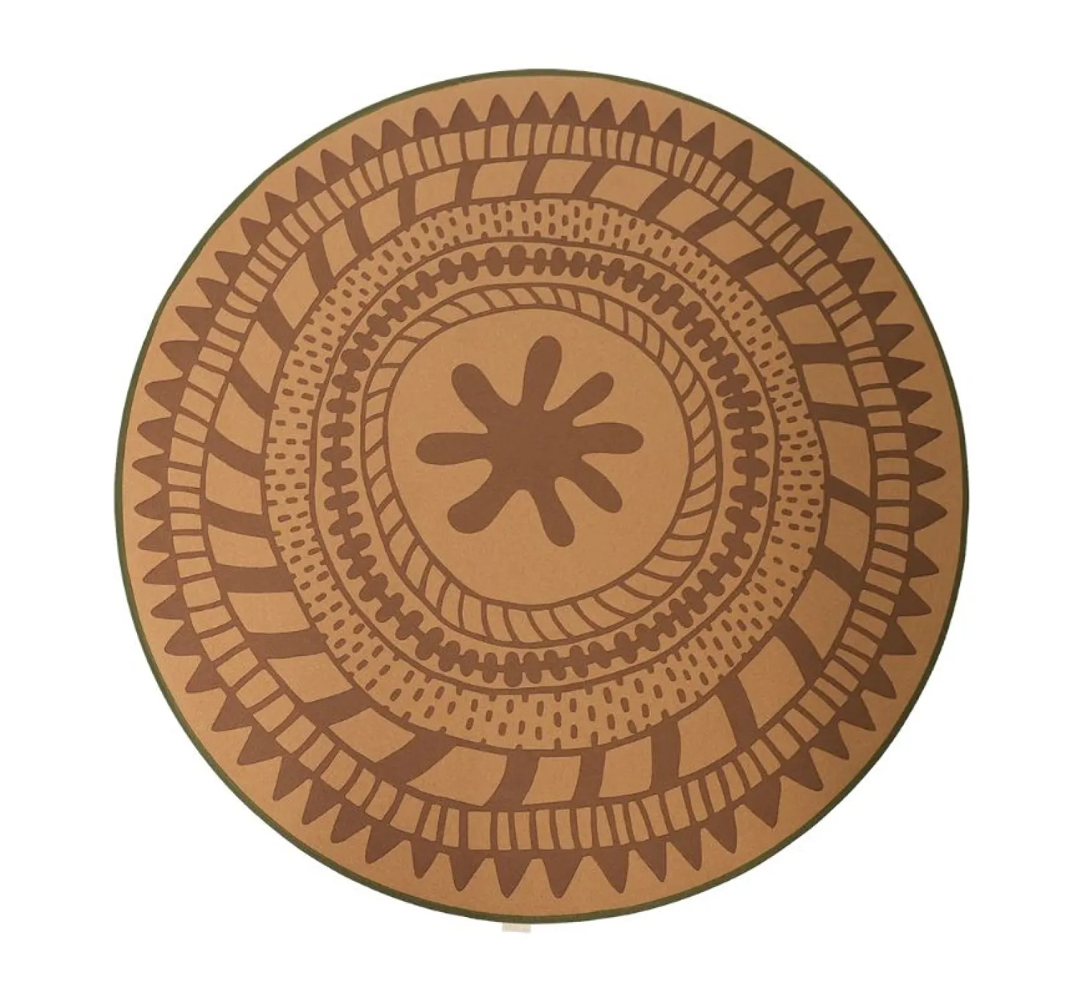 Dette runde legetæppe er lavet af kork, et naturligt materiale, der giver en blød og sikker overflade til leg. Korken er holdbar og let at vedligeholde, hvilket gør den til en praktisk løsning for familier med små børn.