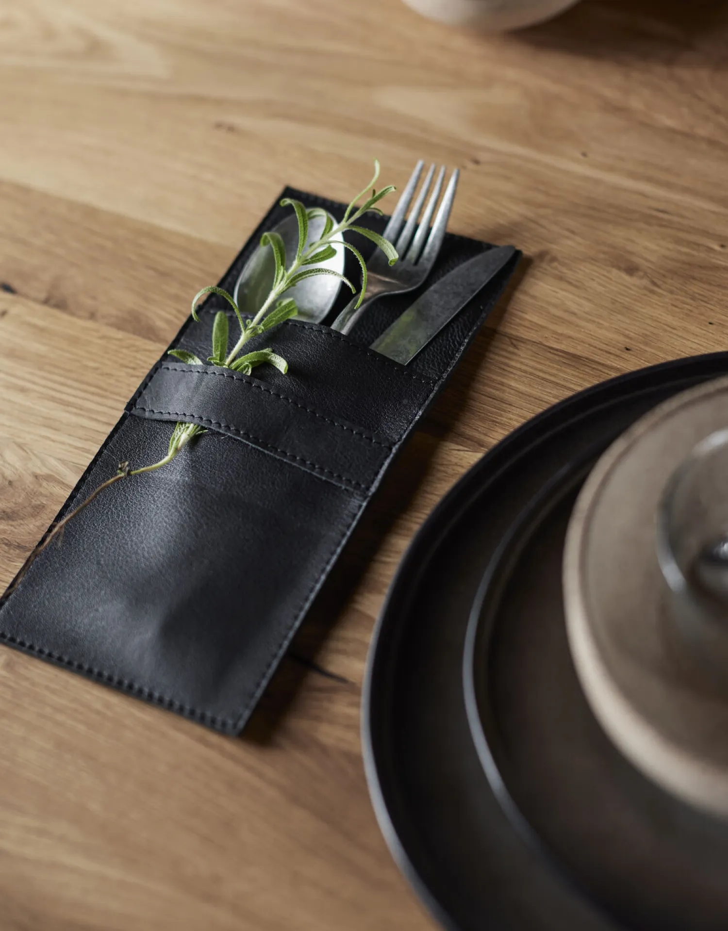 Camou bestiklommen i sort bøffellæder tilfører øjeblikkeligt tekstur og kontrast til enhver borddækning. Designet med inspiration fra naturens rå skønhed, kombinerer bestiklommen funktionalitet og tidløs elegance.Bestiklommen har en praktisk form, der holder bestikket organiseret. Med sin rige farve tilføjer bestiklommen et raffineret og luksuriøst element til din borddækning. Camou bestiklommen gør det nemt at dække et smukt og elegant bord, der ellers kan være en udfordring. Bestiklommen er designet med et dekorativt bånd, hvor du kan sætte dit personlige præg med en blomst, en lille gren eller en krydderurt – kun fantasien sætter grænser.Læderet er let at tørre af og vedligeholde. Læderet vil med tiden udvikle en smuk patina og blive blødere. For at friske farven op kan du med fordel bruge læderfedt.Læderet er et naturligt materiale, og derfor vil hver bestiklomme have sine egne unikke variationer i struktur og farve, hvilket gør hver enkelt lomme helt speciel.Bestiklommen passer perfekt til en gaffel, kniv og ske. Hver bestiklomme leveres enkeltvis. Camou bestiklommen i sort bøffellæder tilfører øjeblikkeligt tekstur og kontrast til enhver borddækning. Designet med inspiration fra naturens rå skønhed, kombinerer bestiklommen funktionalitet og tidløs elegance.Bestiklommen har en praktisk form, der holder bestikket organiseret. Med sin rige farve tilføjer bestiklommen et raffineret og luksuriøst element til din borddækning. Camou bestiklommen gør det nemt at dække et smukt og elegant bord, der ellers kan være en udfordring. Bestiklommen er designet med et dekorativt bånd, hvor du kan sætte dit personlige præg med en blomst, en lille gren eller en krydderurt – kun fantasien sætter grænser.Læderet er let at tørre af og vedligeholde. Læderet vil med tiden udvikle en smuk patina og blive blødere. For at friske farven op kan du med fordel bruge læderfedt.Læderet er et naturligt materiale, og derfor vil hver bestiklomme have sine egne unikke variationer i struktur og farve, hvilket gør hver enkelt lomme helt speciel.Bestiklommen passer perfekt til en gaffel, kniv og ske. Hver bestiklomme leveres enkeltvis.