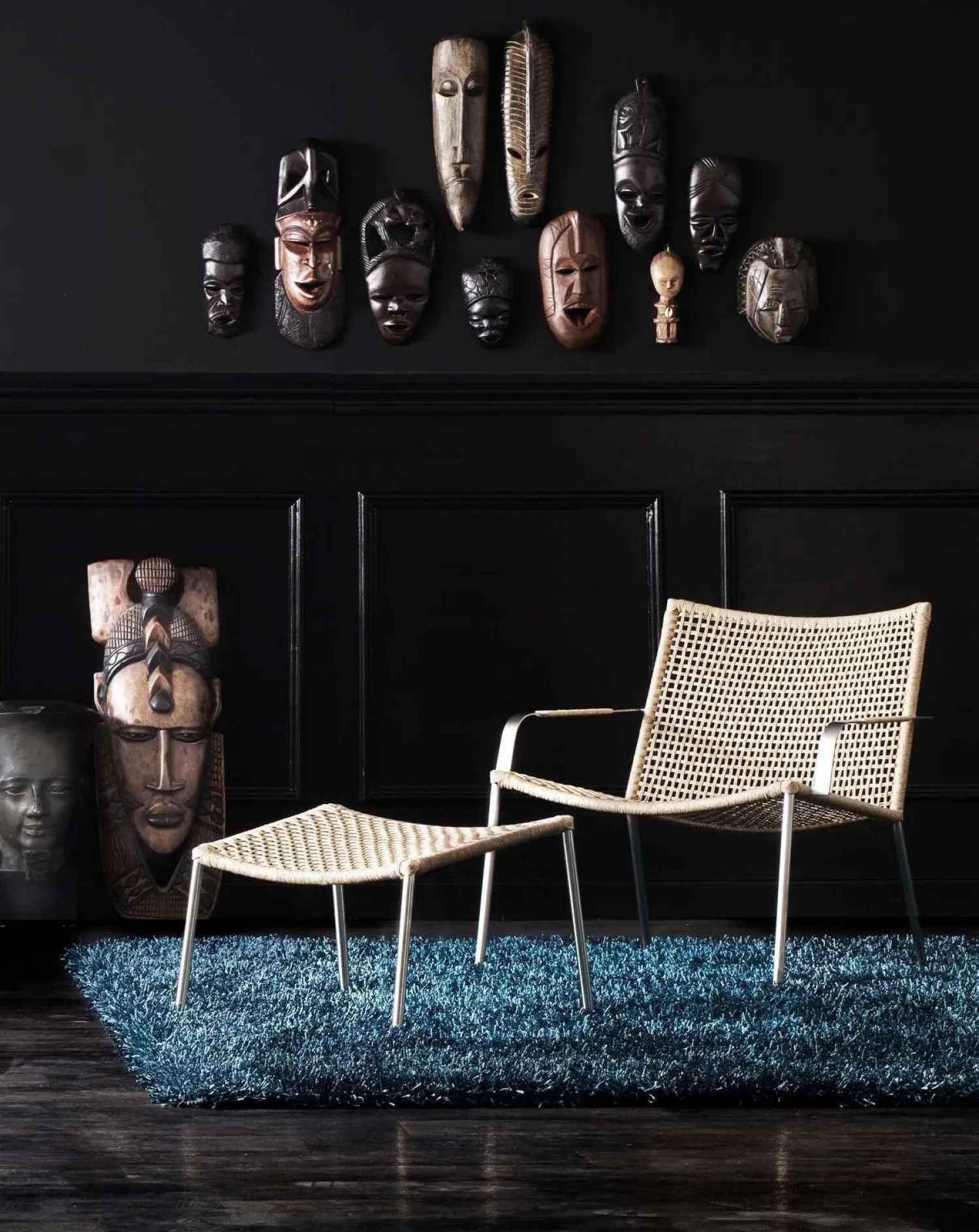 Når fodskamlen ikke bruges, kan den placeres under lounge stolens sæde.