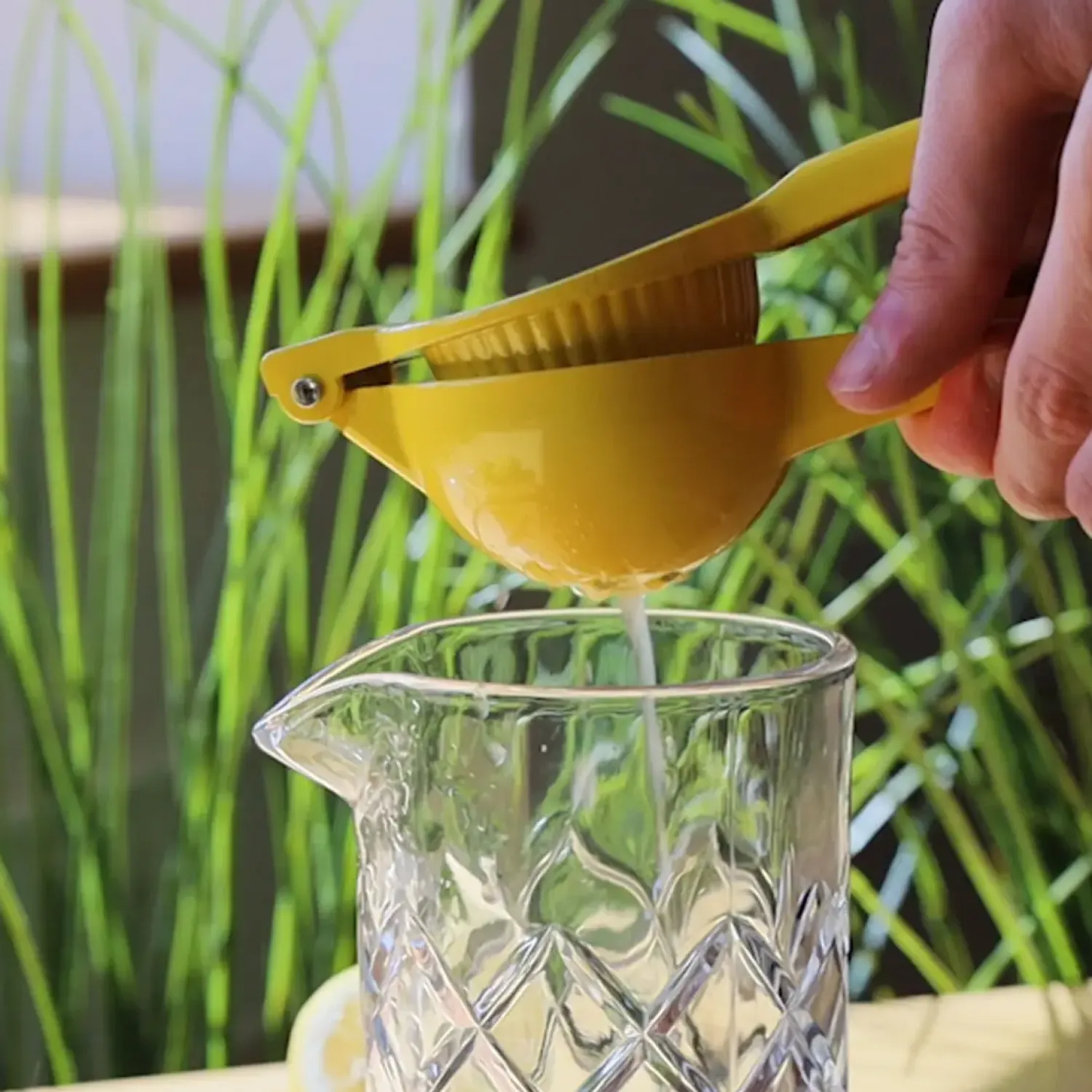 Den mekaniske pressefunktion med to håndtag gør det let at presse citrusfrugter. Placer en halv citron med skærefladen nedad i den perforerede presseskål, og klem håndtagene sammen for at udvinde saften.