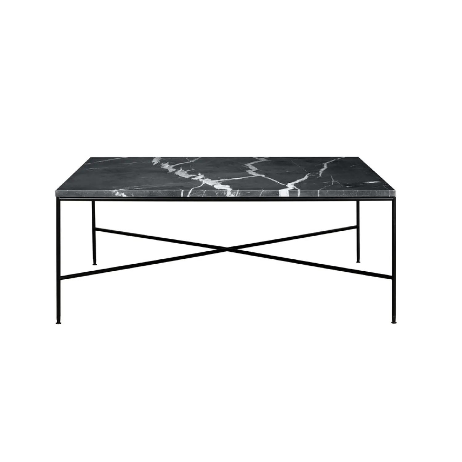 Den sorte overflade med hvide åremønstre er et naturligt materiale, der ældes med værdighed. Metalrammen er konstrueret til at understøtte bordpladens vægt, mens den tynde profil holder designet luftigt. Fritz Hansen står bag produktionen, hvilket sikrer håndværksmæssig kvalitet i detaljerne.