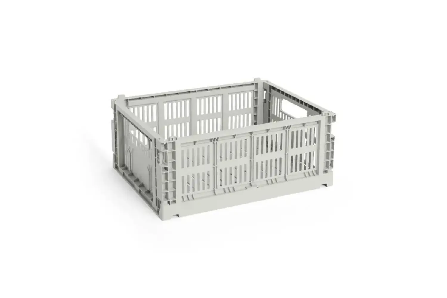 Denne praktiske opbevaringskasse fra HAY kombinerer smart design med gennemtænkt funktionalitet. Med et karakteristisk gittermønster på siderne og bunden sikrer kassen både god ventilation og stabilitet i din daglige brug.