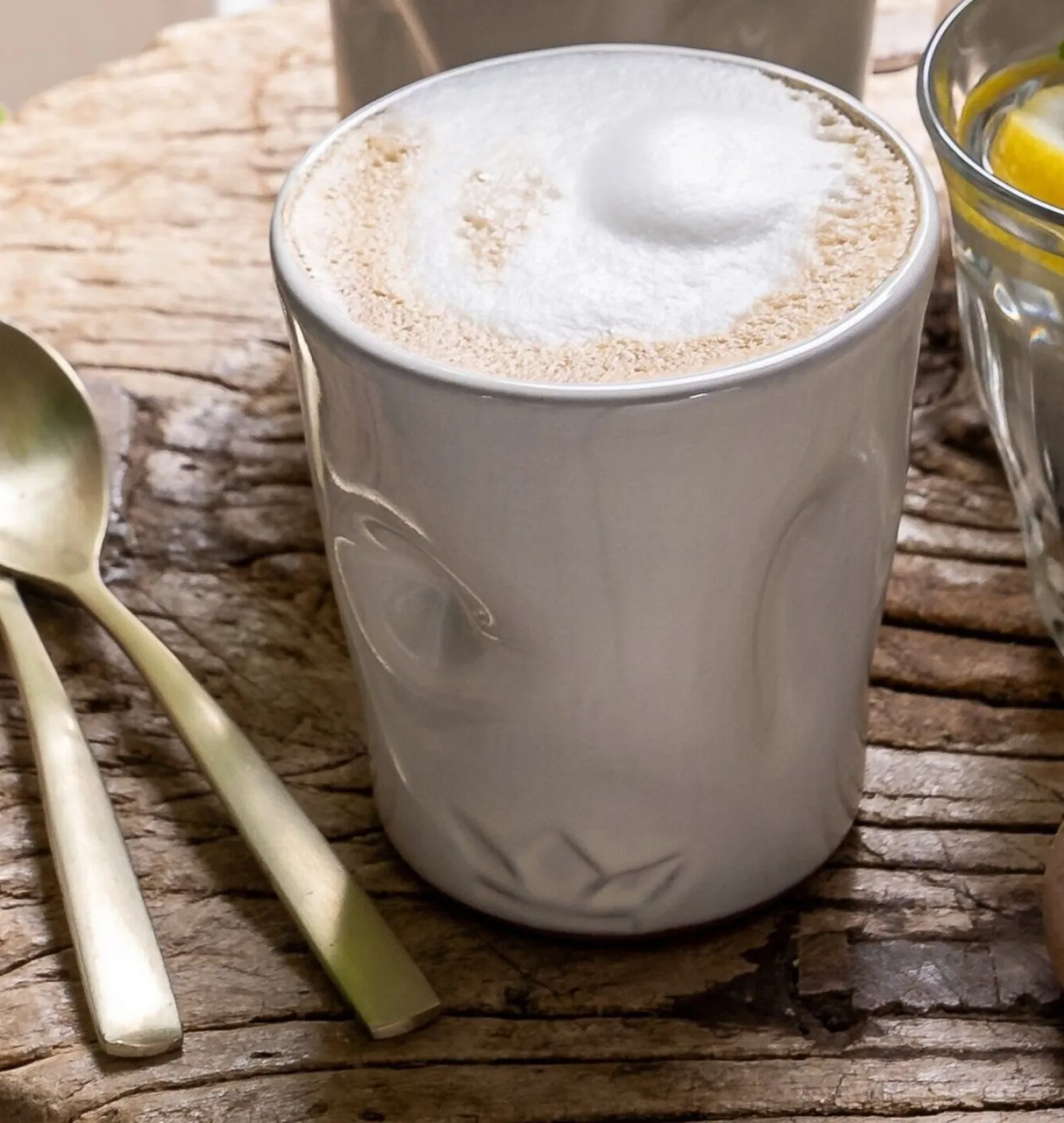 Til en skummende latte eller cappuccino, vælg det matchende krus med dets typiske bulede form. De, der kan lide deres kaffe i stor skala – og teelskere – vil sætte pris på dette krus i fuld størrelse. Fås i 3 sofistikerede farver: Sort mat, hvid og platin. Lavet af naturlig keramik. Håndlavet: Hvert stykke er unikt og kan variere en smule i form og farve. Brandhærdet ved 1100 °C. Tåler ovn, mikrobølgeovn og opvaskemaskine. Multifunktionel og nem at rengøre. Passer perfekt til vores Dented-kander. Vores Dented-kop (130 ml)