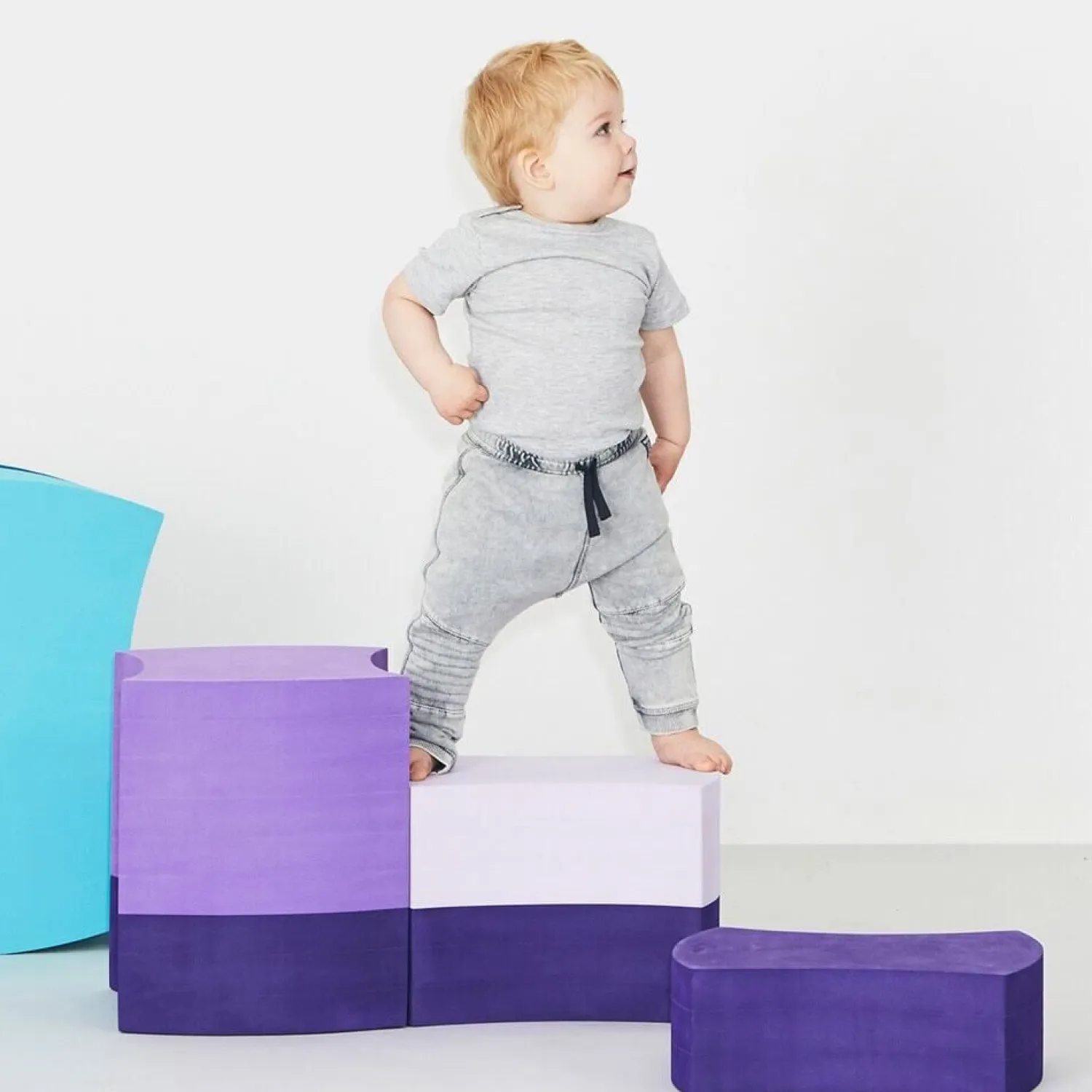 Denne legeblok i 24 cm højde kombinerer funktionel leg med et tofarvet design i lys lilla og mørk lilla. Den buede form inviterer til aktiv bevægelse og kreativ udfoldelse, mens den visuelle fremtoning passer naturligt ind i moderne hjem.